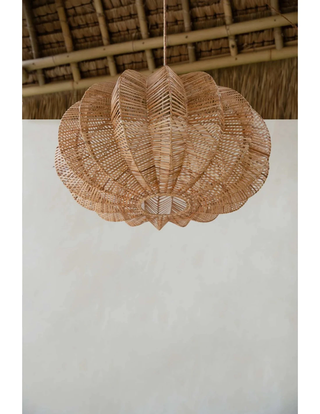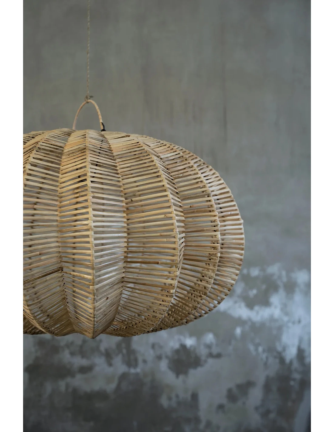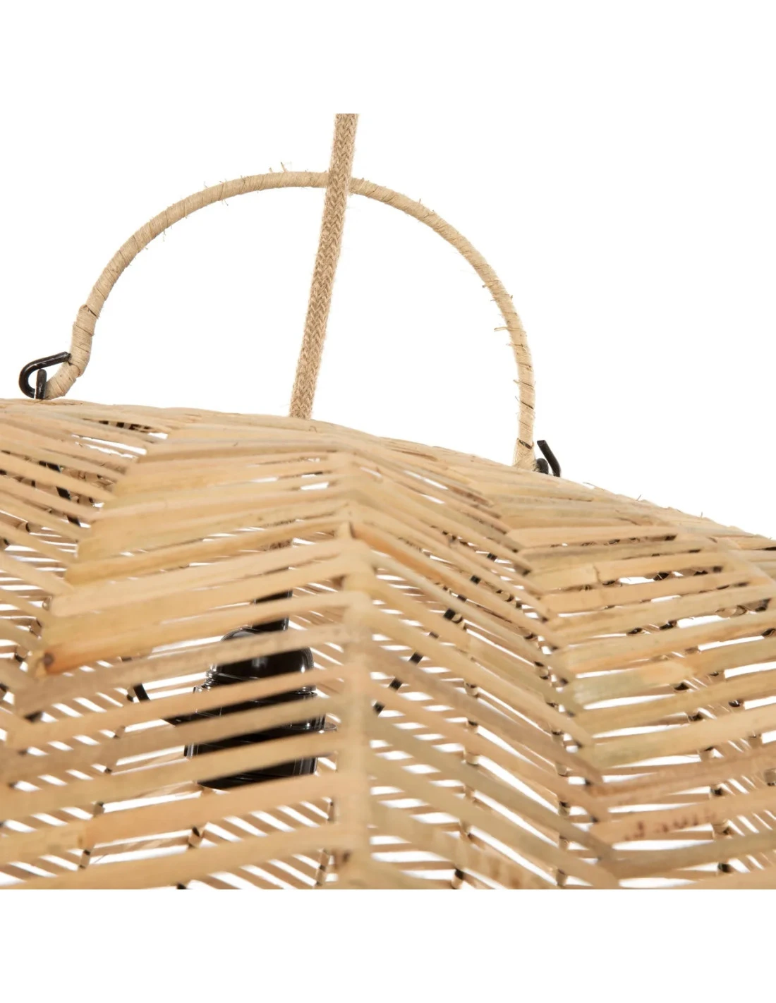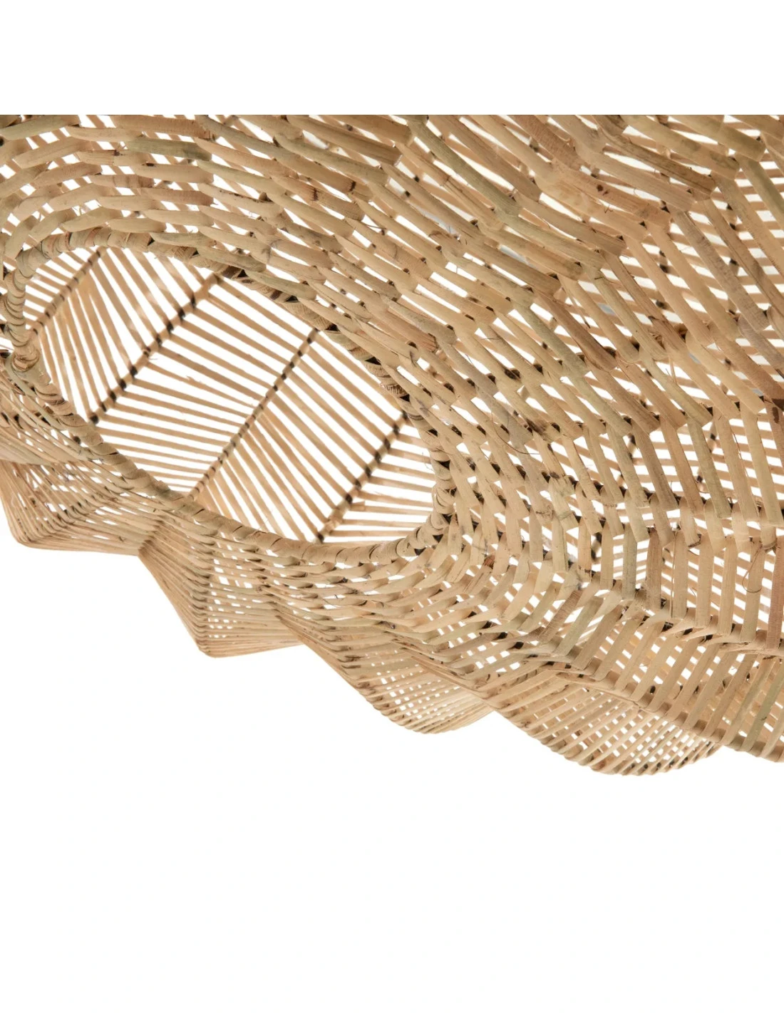 L’abat-jour est de couleur naturelle et mesure 50 cm de hauteur, 72 cm de largeur et 72 cm de longueur. Il est fabriqué en rotin et ne comprend pas de câblage (utilisez un raccord standard E27).