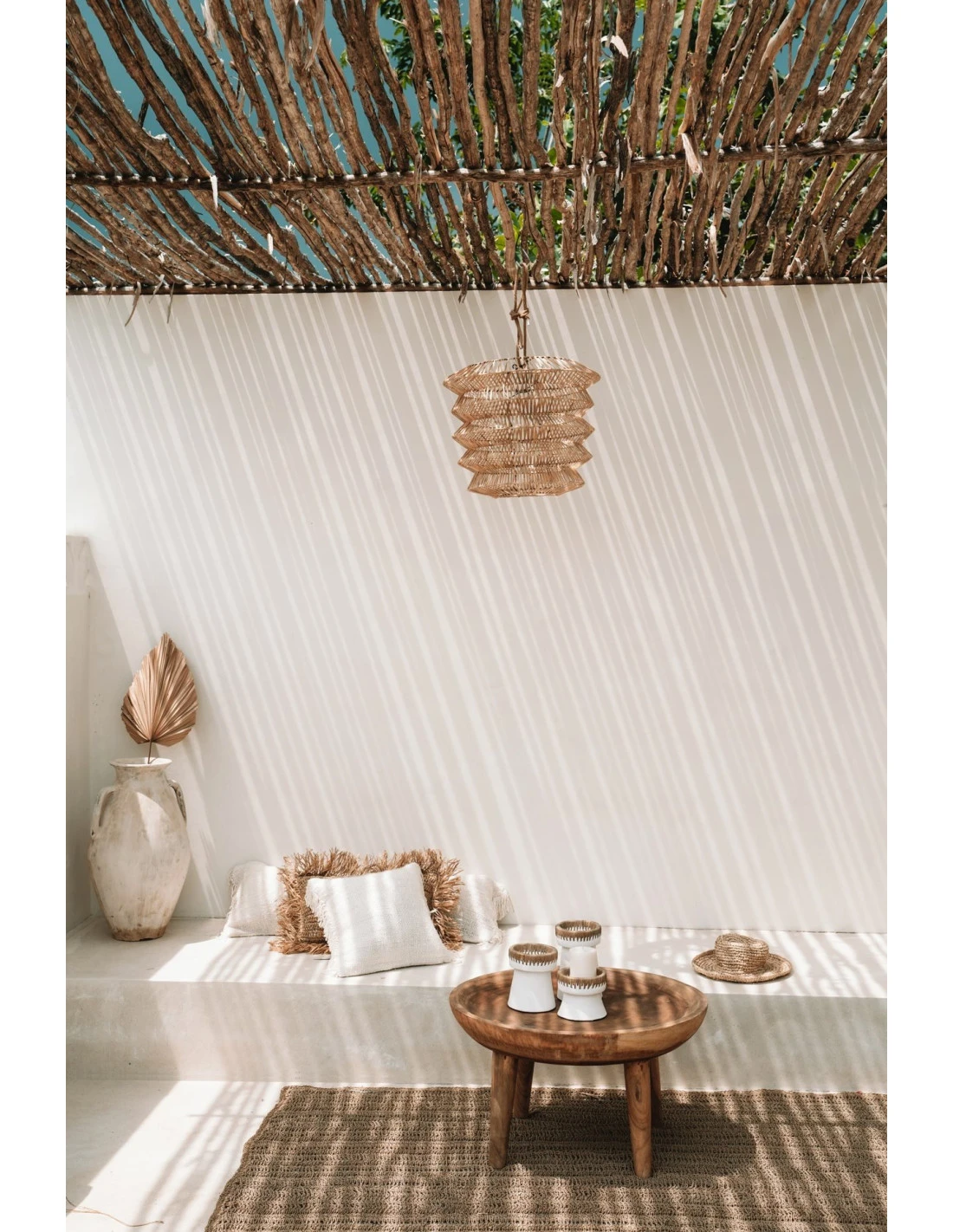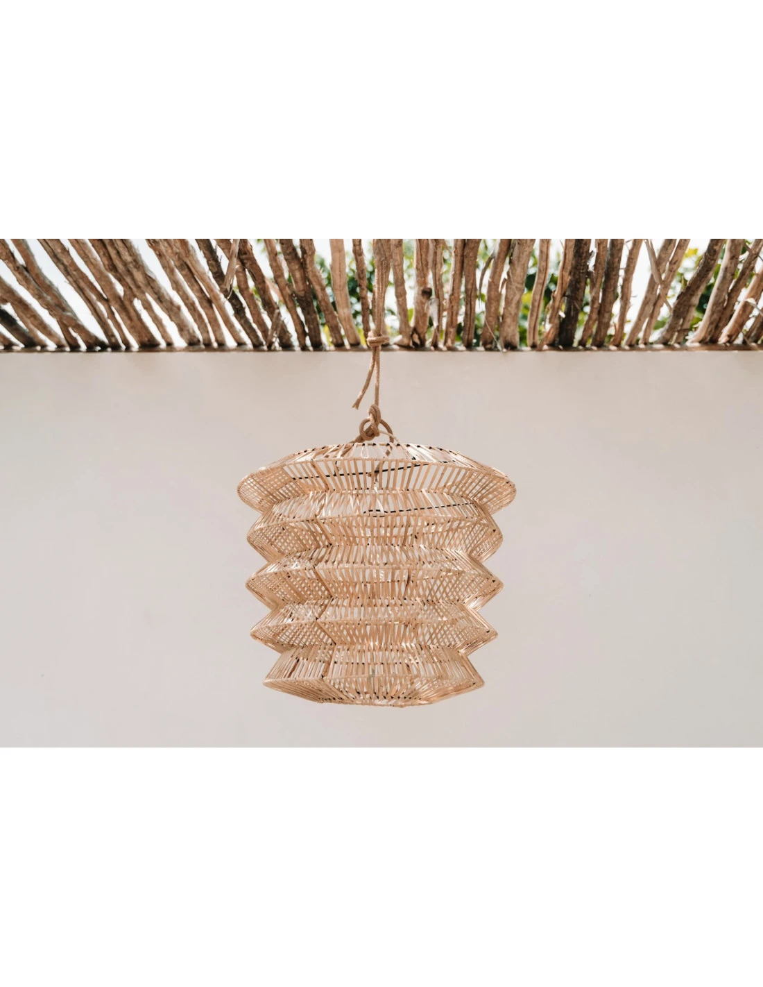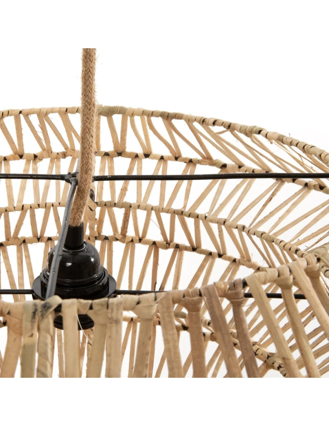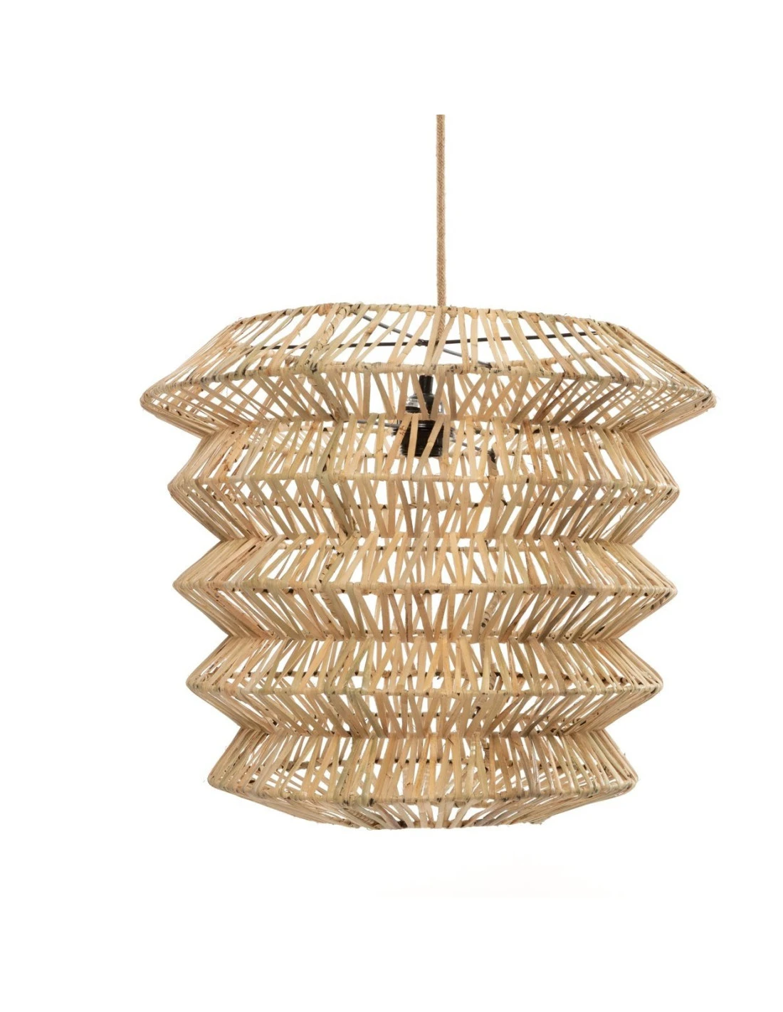 Ennuyé par les cercles, les rectangles et les carrés? Pourquoi ne pas essayer la forme ingénieuse de cette suspension en rotin! Ce luminaire d’inspiration orientale, conique de haut en bas, ajoutera du style à votre salon.