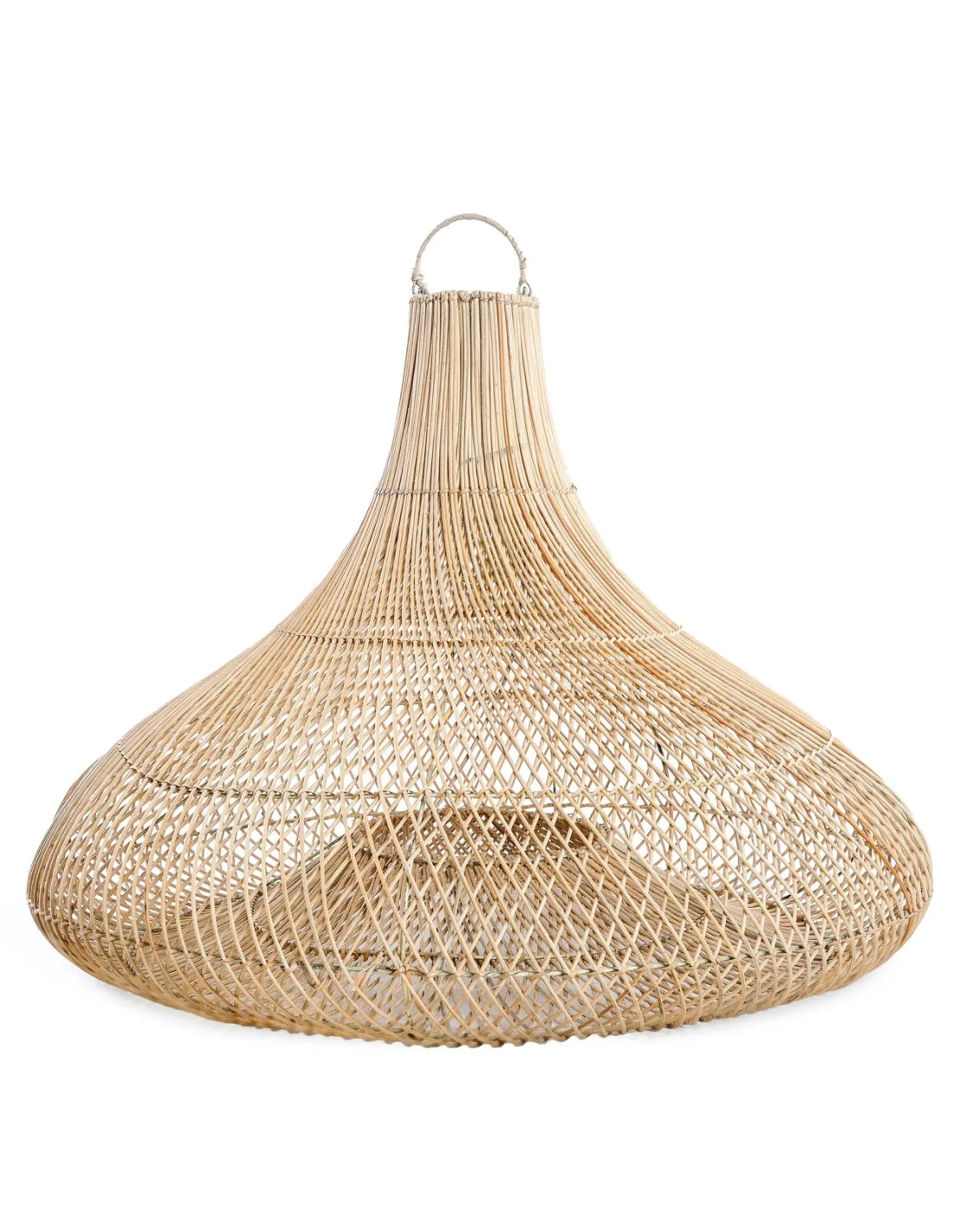 De Shala est une suspension ou une lampe sur pied qui fera une impression. La forme de cloche est entièrement fabriquée en rotin et a l’aspect organique dont chaque intérieur a besoin. Disponible en deux tailles.