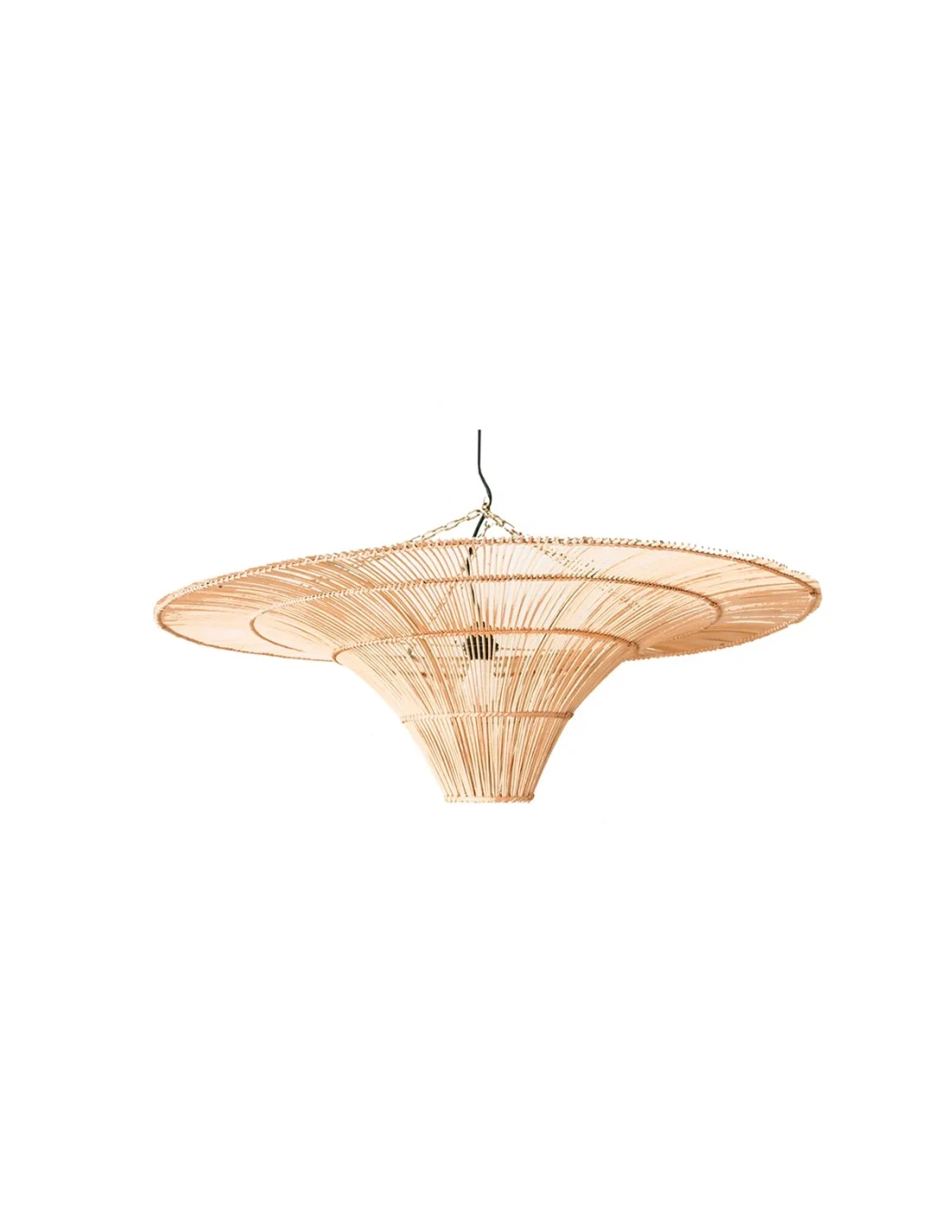 Cette suspension ou plafonnier est déjà le plus discuté de notre collection ! Disponible en trois tailles, allant de moyenne à grande, ce chef-d’œuvre en rotin est tel une œuvre d’art pour votre plafond. Peu importe si vous en suspendez un ou les combinez tous les trois – votre intérieur brillera comme jamais auparavant. Également disponible en noir (deux tailles).