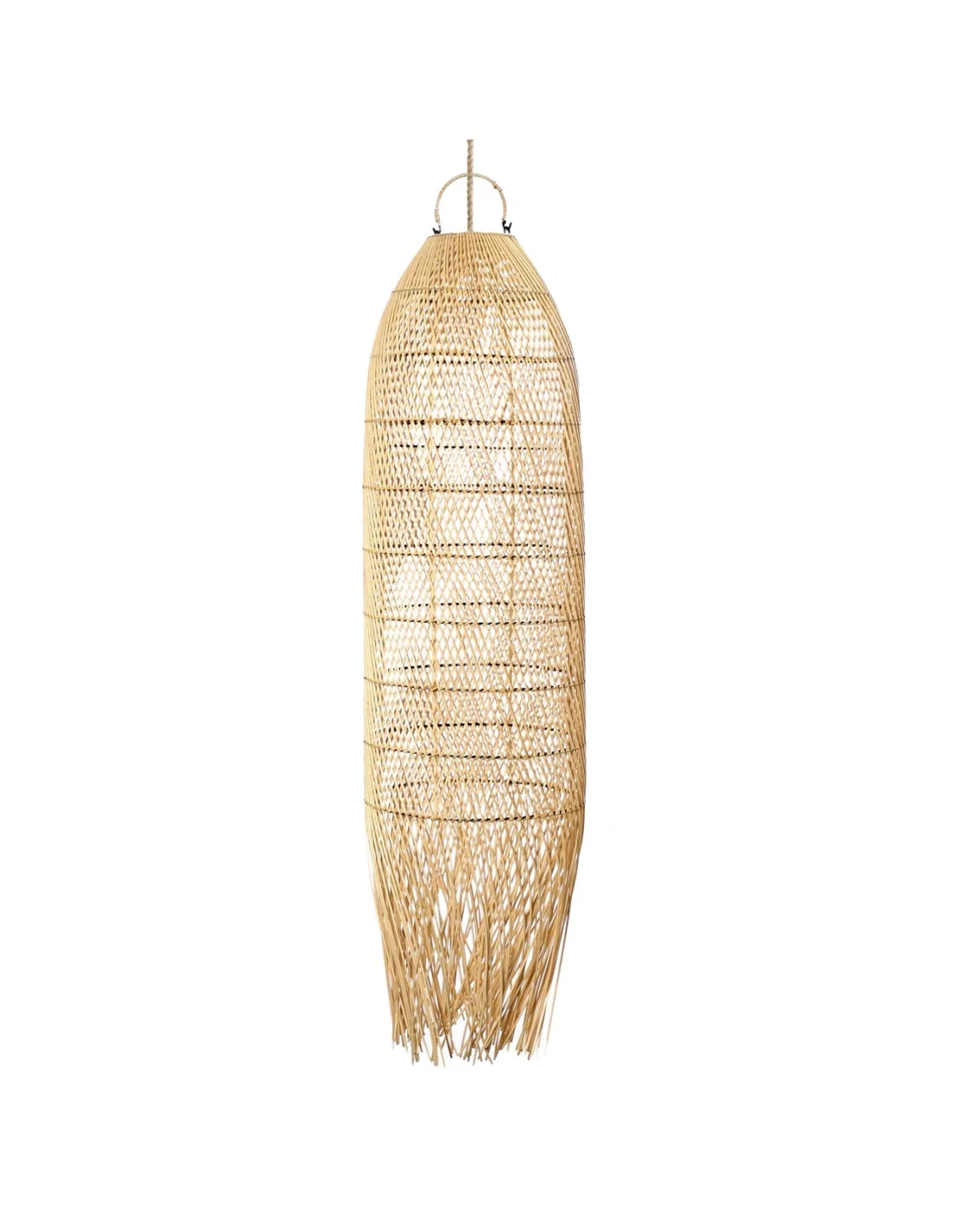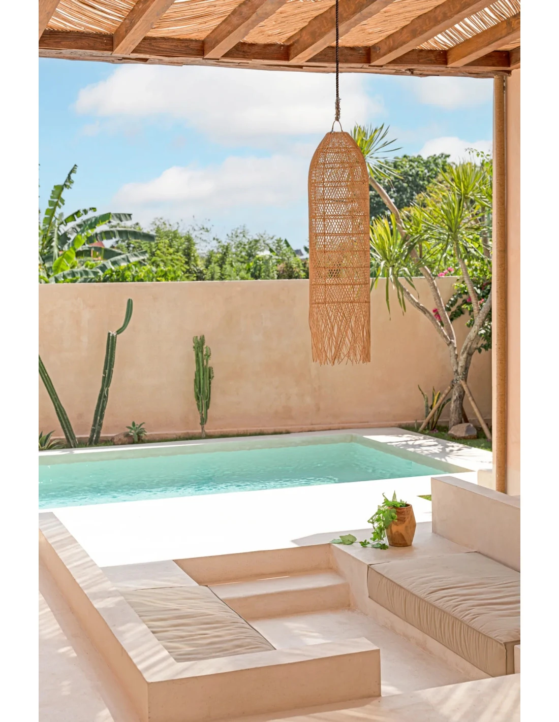 Une suspension en rotin magnifiquement irrésistible qui donne à votre salon, chambre à coucher ou espace extérieur couvert le look boho parfait. Apportez une ambiance de vacances dans votre maison avec cette superbe lampe!
