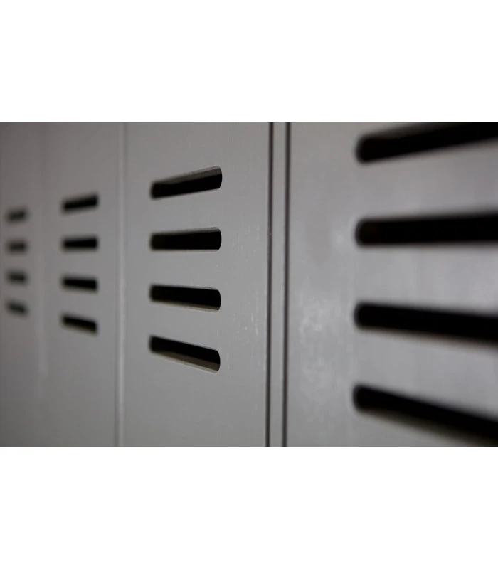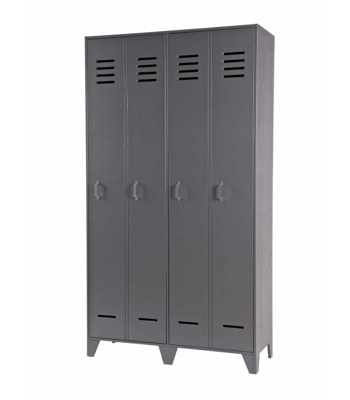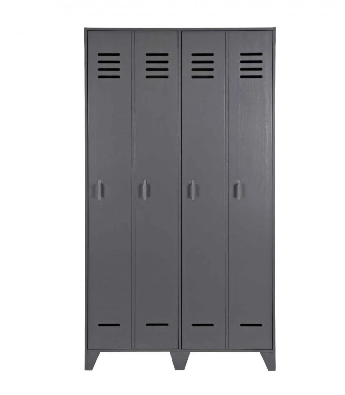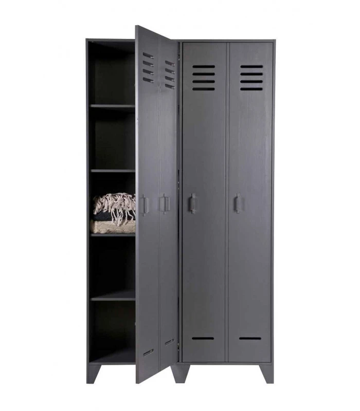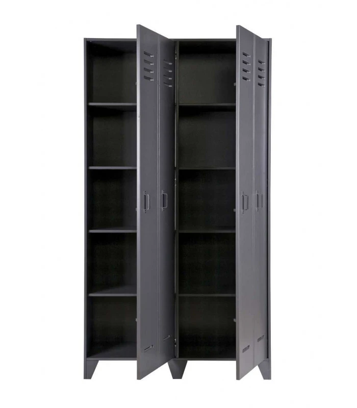 Elle est disponible dans les couleurs noir, gris acier et un blanc pure. Afin de donner un effet de casier cette armoire est faite de 2 grandes portes et donnant l’effet du double de portes.