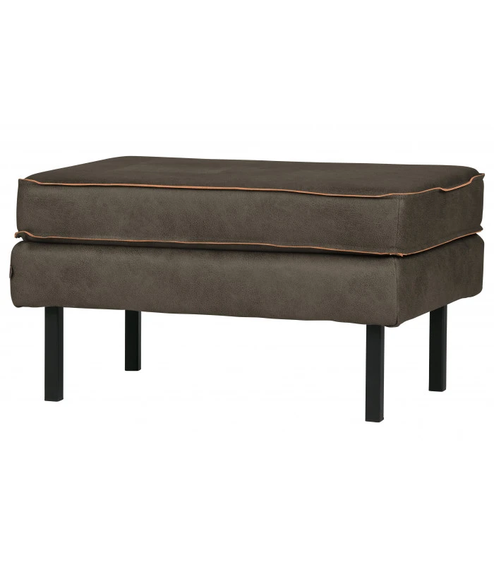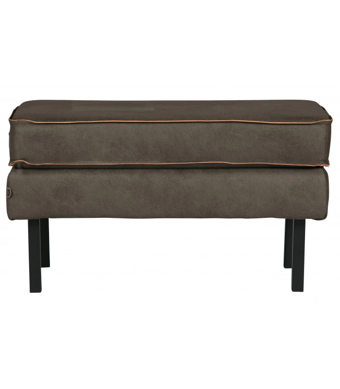 Banc entièrement recouverte de cuir couleur Army pour une décoration très vintage et très moderne de part la simplicité des pieds.