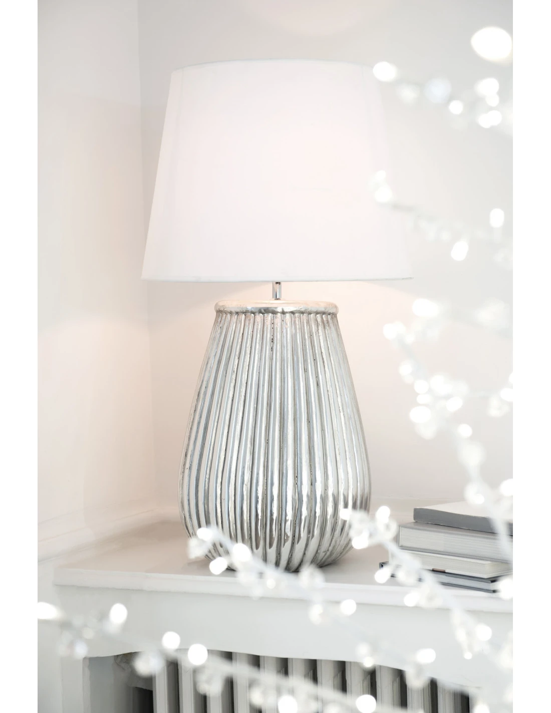 Pied de lampe + Abat-jour Lignes Faïence Argent