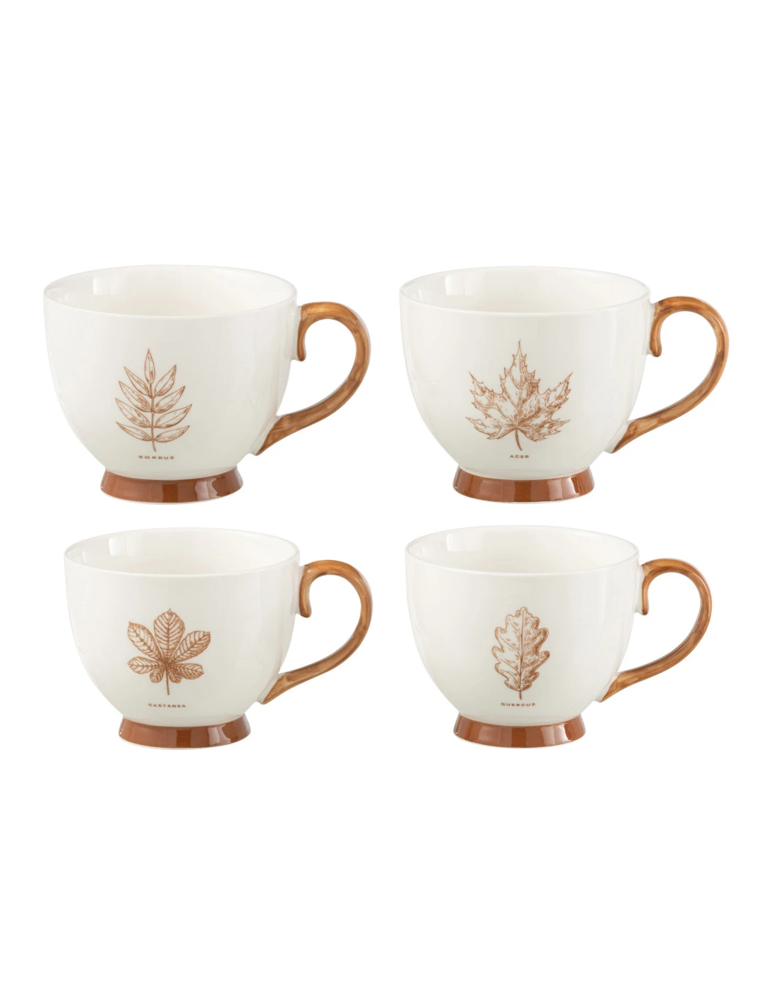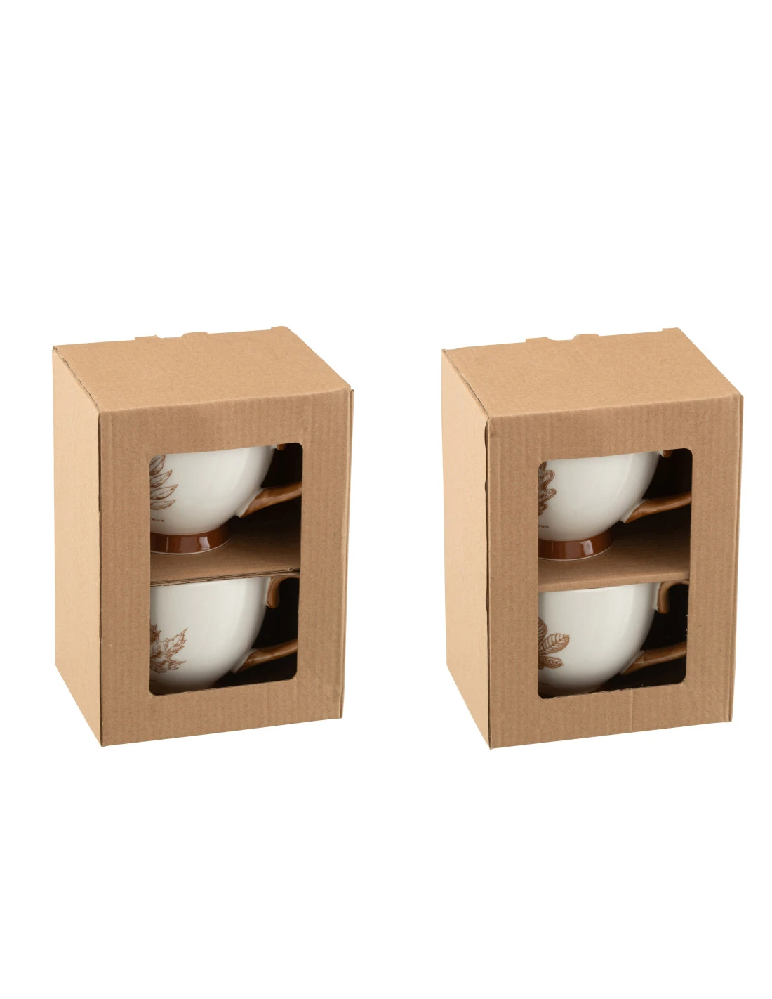 Boîte de 2 grands mugs feuille fenêtre en céramique marron assortis de 2, Collection Hiver 2024. Largeur: 11cm, Hauteur: 8,8cm, Longueur: 13,5cm, Poids: 0,63 kg, Matière: Céramique (100%).