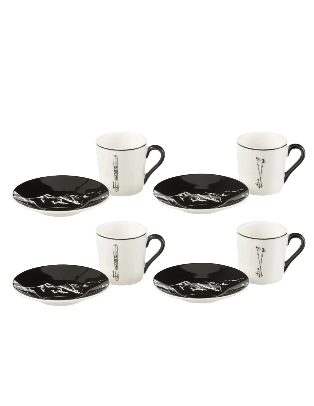 Boîte De 4 Tasses à Café + Soucoupe Windownbox En Céramique Noir/blanc Petit