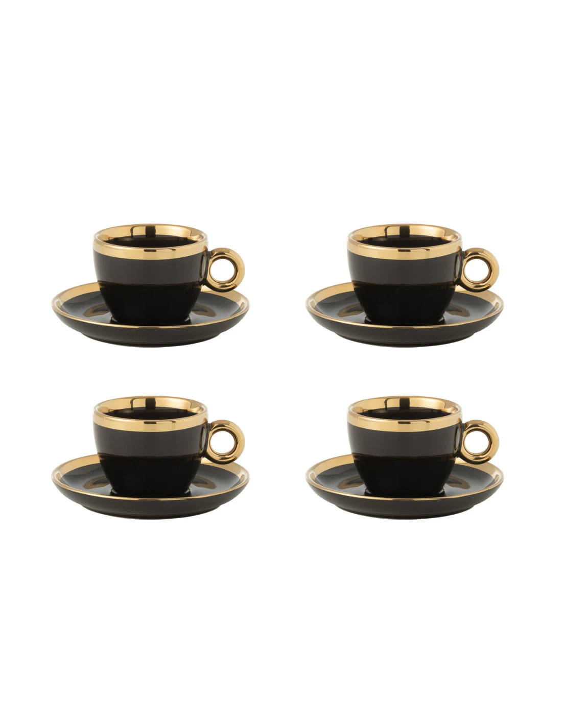 Boîte de 4 tasses et soucoupes en céramique noir/or