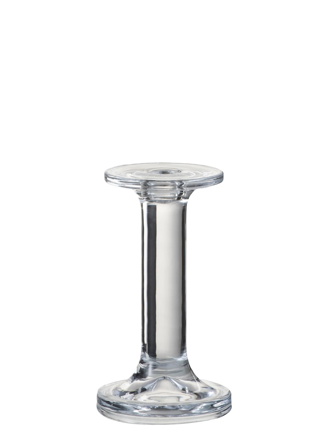 Bougeoir en verre lisse transparent petit. Largeur: 9,5 cm, Hauteur: 16 cm, Longueur: 9,5 cm, Poids: 0,48 kg. Collection Zomer 2021. Couleur: Transparent. Composition en verre à 100%.