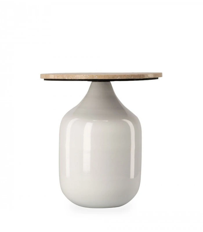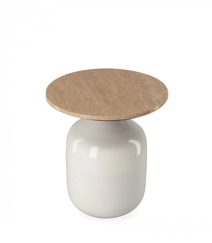 Bout de canapé en fer et plateau en travertin (roche calcaire)