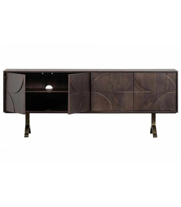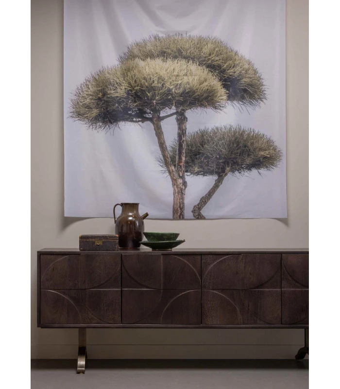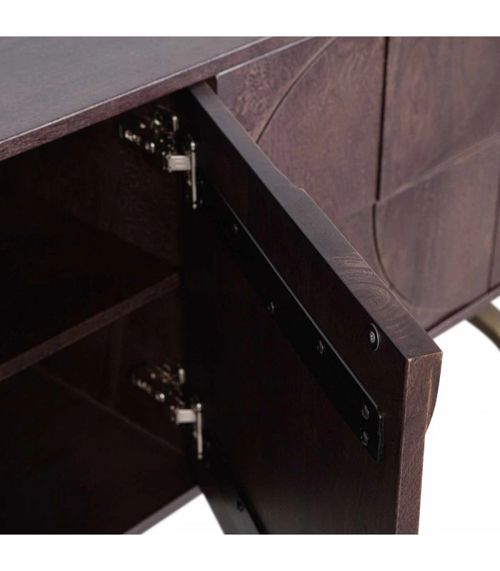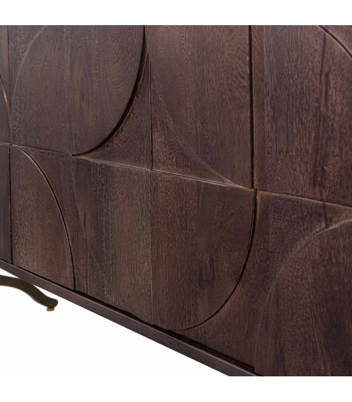 La chaude finition noyer du bois de manguier confère au buffet Dessin un aspect attrayant. Le piètement ludique donne de l’air au design et assure une grande stabilité. Le motif 3D sur les portes confère à l’article une atmosphère unique.