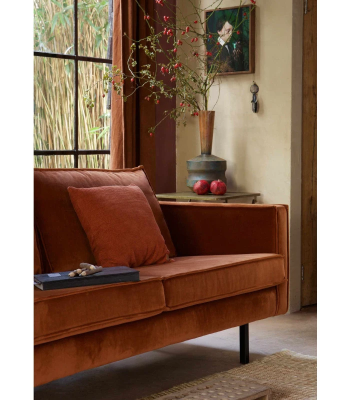 Le canapé Rodeo est constitué d’une combinaison de bois massif, de panneaux de particules, de mousse de polyuréthane d’une densité de 25 kg/m3 et de ressorts en zigzag. Le siège contient une mousse de polyuréthane d’une densité de 30 kg/m3 (T3037). Le dossier est constitué d’une combinaison de 70% de mousse découpée et de 30% de silicone. Ce Rodeo est tapissé d’un riche velours. Notre tissu en velours Jarra a un aspect et un toucher luxueux. Le tissu est fin et a un léger éclat. Le velours Jarra est composé de 100% de polyester et a une qualité pleine et lourde. Le matériau est donc adapté à une utilisation intensive (Martindale 100 000). Outre son design élégant, le tissu en velours reste beau pendant longtemps. Notre tissu Jarra ne se déforme pas facilement et ses couleurs sont inaltérables. Le tissu est, à la surprise de beaucoup, un tissu très facile à entretenir.