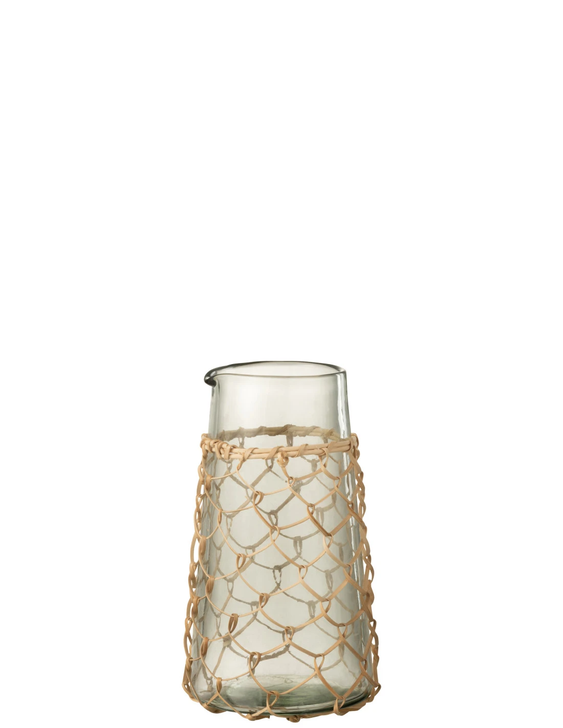 Carafe Tricot Verre/Canne Transparente. Dimensions: Largeur 9, Hauteur 20, Longueur 10.5, Poids 0.645 kg. Collection Zomer 2023. Couleur Transparent. Composition: Jute(10%), verre(90%).