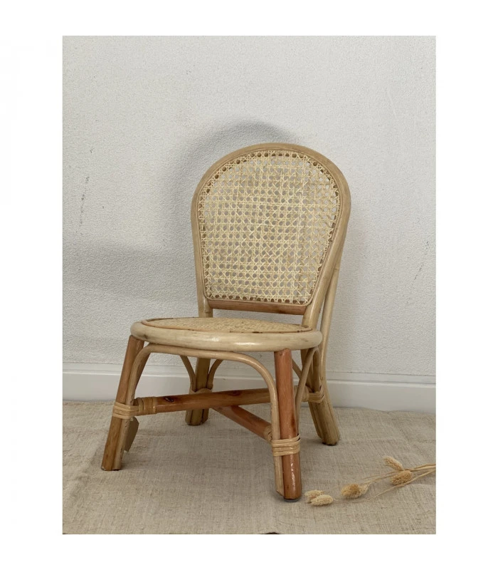 Cap sur le naturel avec cette chaise enfant en rotin naturel, avec une assise tissée et un dossier canné.