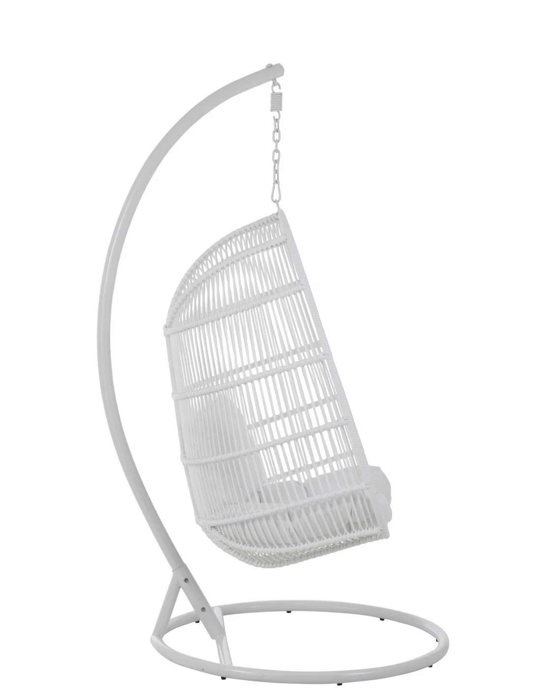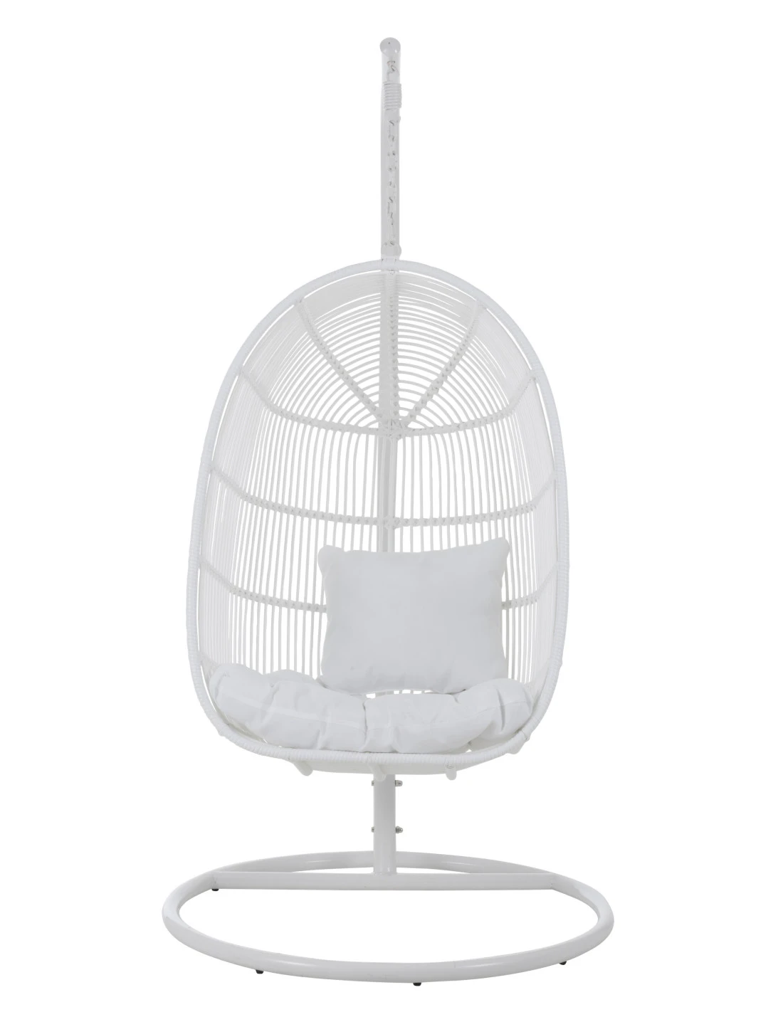 Chaise suspendue ovale en acier blanc.