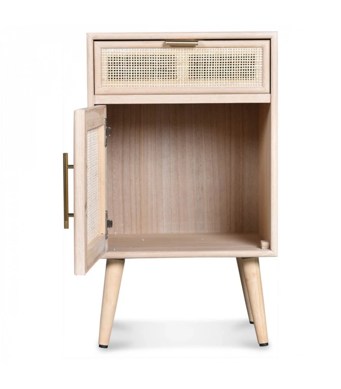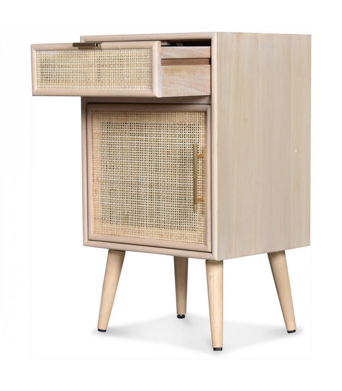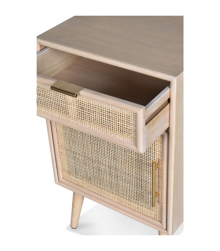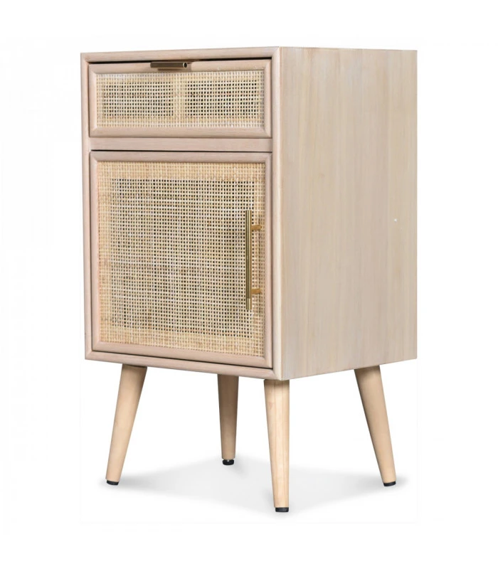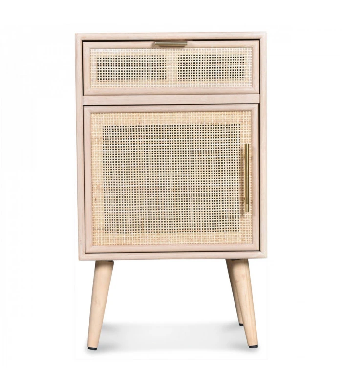 Un vent moderne et naturel souffle sur votre déco avec ce chevet Roro en Pin et Rotin tressé.