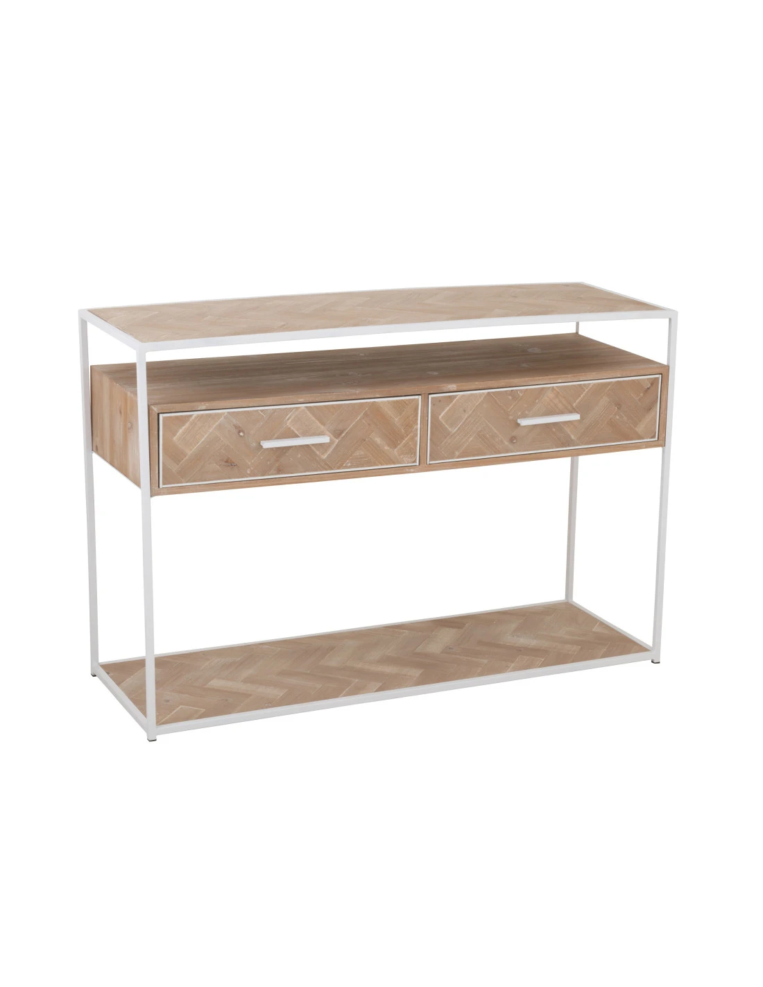 Console Zigzag 2 Tiroirs Bois/Métal Naturel/Blanc