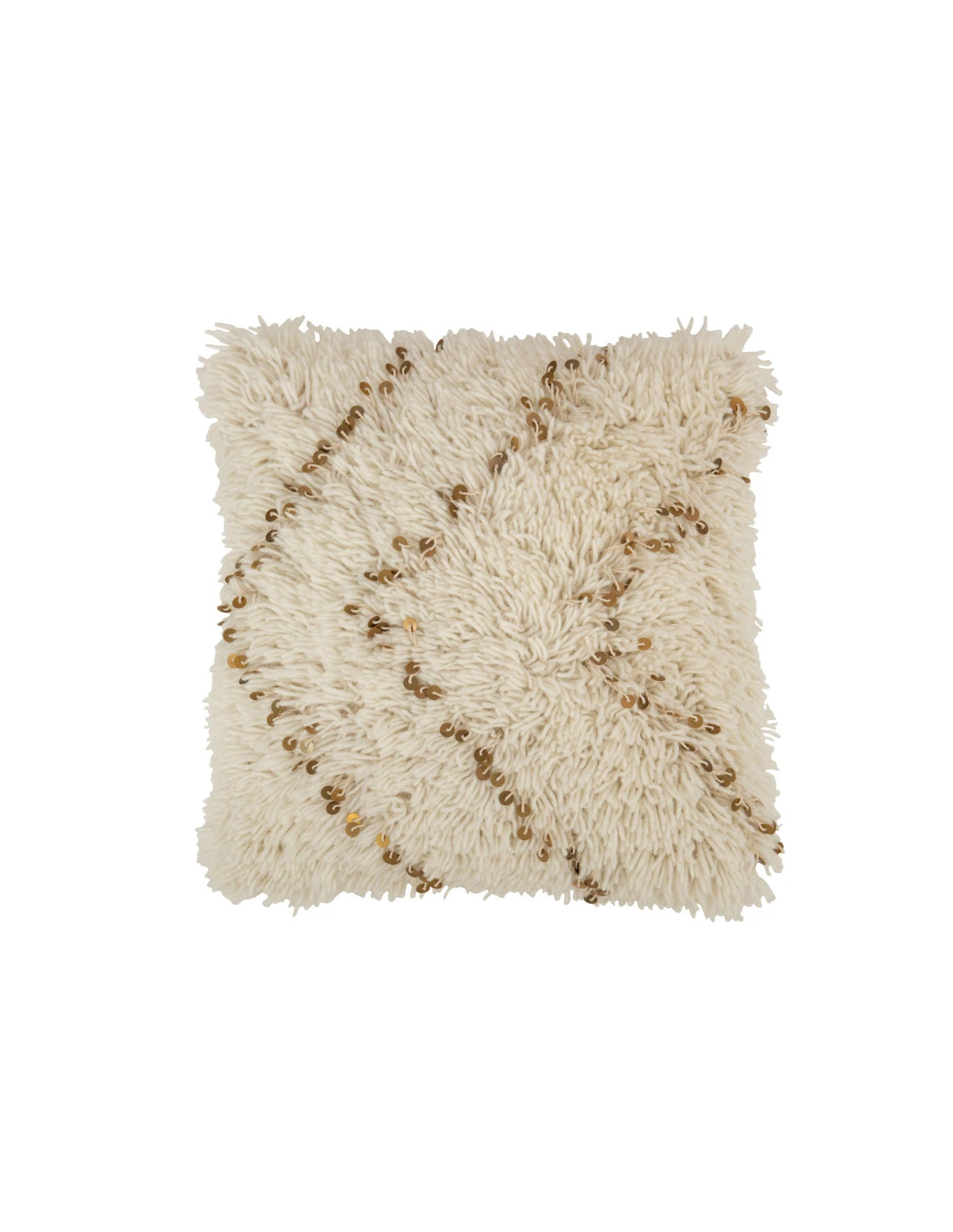 Coussin Carré en Coton Perle Blanc/Or. Largeur: 47 cm, Hauteur: 14 cm, Longueur: 47 cm, Poids: 1,55 kg, Collection: Hiver 2022, Couleur: Blanc, Composition Matérielle: Coton (100%), Instructions de Lavage: Nettoyer les taches.