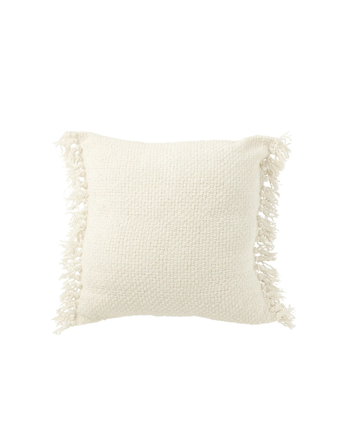 Coussin Tissé à Franges en Viscose/Coton Blanc