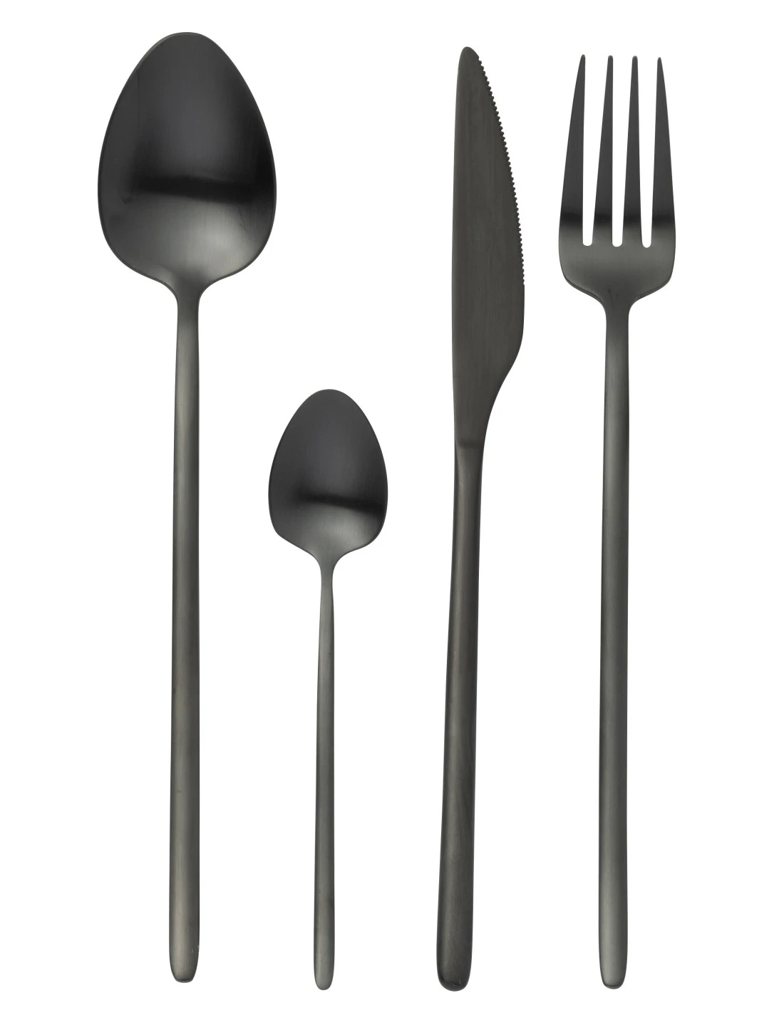 Couverts de table C 24 pièces en acier inoxydable noir mat. Largeur: 16, Hauteur: 6, Longueur: 27, Poids: 0,834 kg. Collection Hiver 2024. Couleur: Noir. Matière: Acier inoxydable (100%).