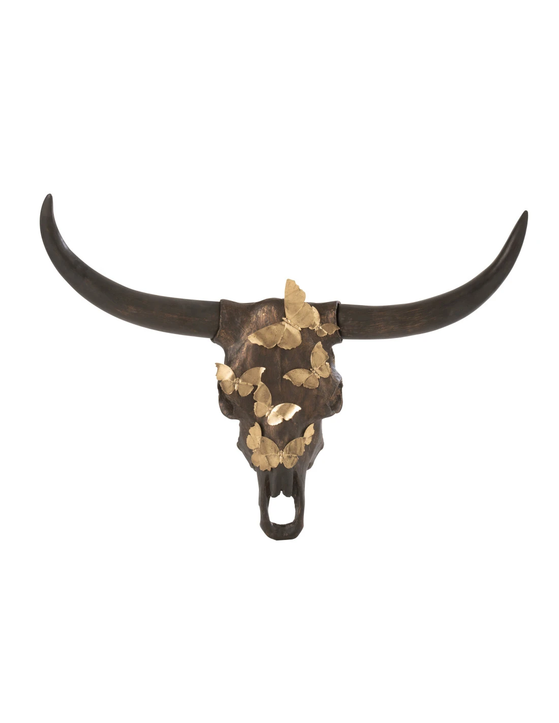 Crâne de bœuf en résine papillon marron/or grand