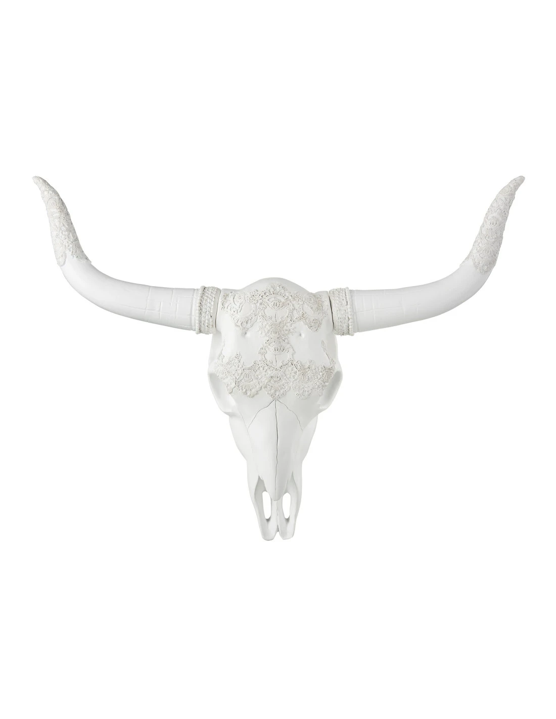 Crâne Cerf Suspendu en Polyrésine Blanc Large. Largeur: 12cm, Hauteur: 50cm, Longueur: 60cm, Poids: 2,12 kg. Collection Zomer 2020. Couleur Blanc. Composition: Poudre de chaux (55%), résine (45%). Instructions de lavage: Non lavable.