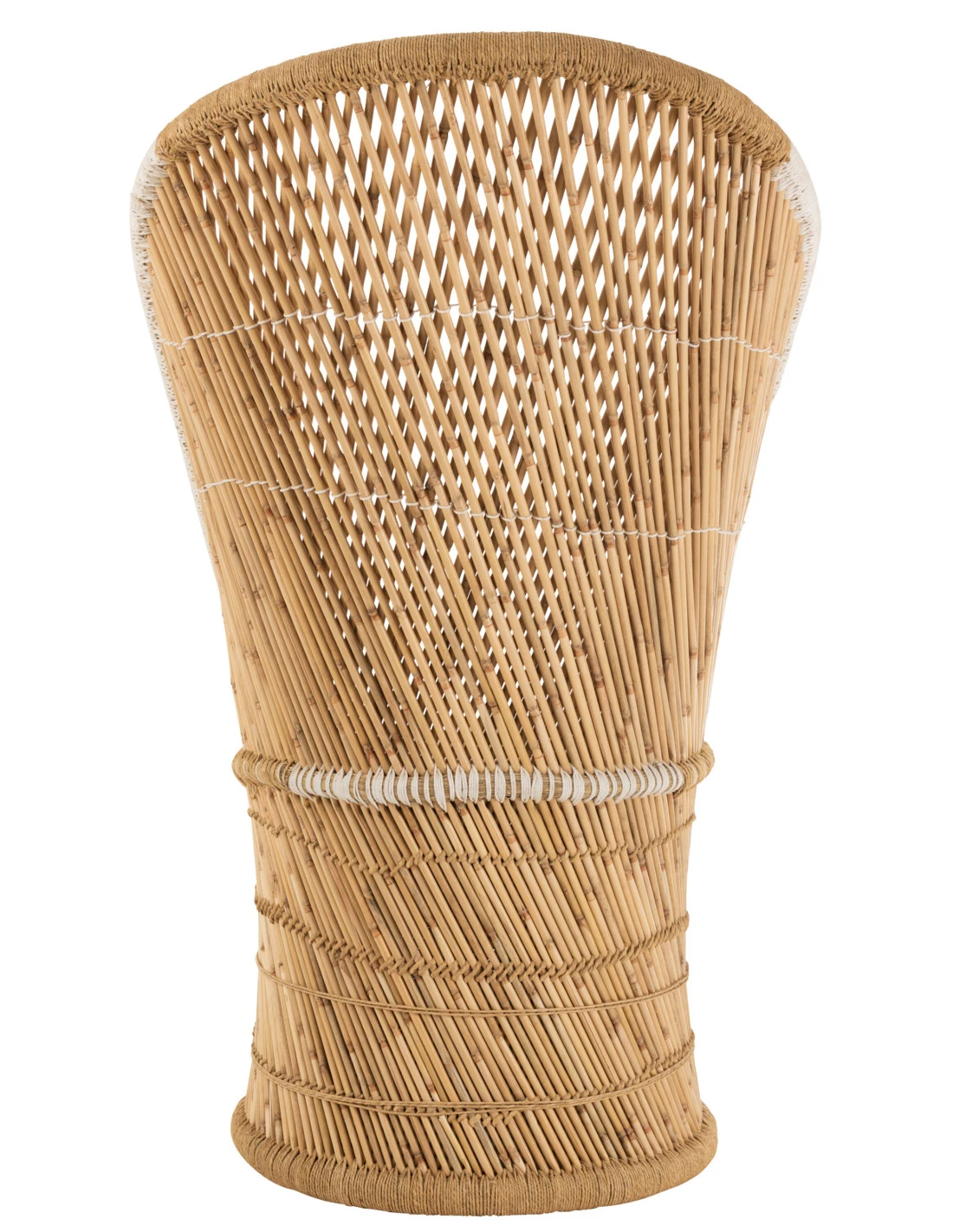 Dossier de chaise en bambou naturel/blanc adulte. Largeur: 82 cm, Hauteur: 151 cm, Longueur: 87 cm, Poids: 9,95 kg, Collection: Zomer 2022, Couleur: Naturel, Composition du matériau: Bambou (75%), fer (5%), corde (20%), Poids maximal supporté: 120 kg, Profondeur de l’assise: 56 cm, Hauteur de l’assise: 51 cm.