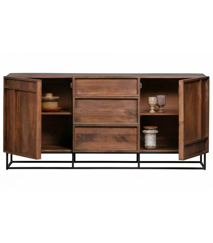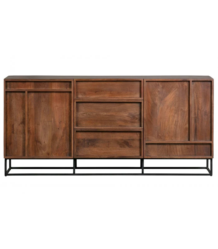 Lenfilaqde avec portes et tiroirs Forrest est élégant, il donnera à votre intérieur une atmosphère naturelle avec la couleur chaude de son bois de Manguier.