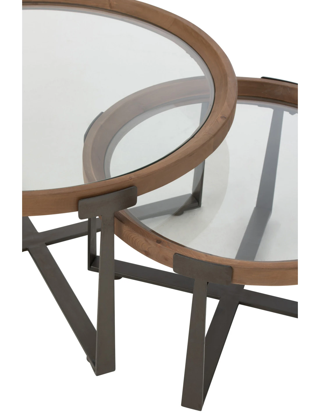 Ensemble de 2 tables basses Luki verre/bois de sapin naturel/noir.