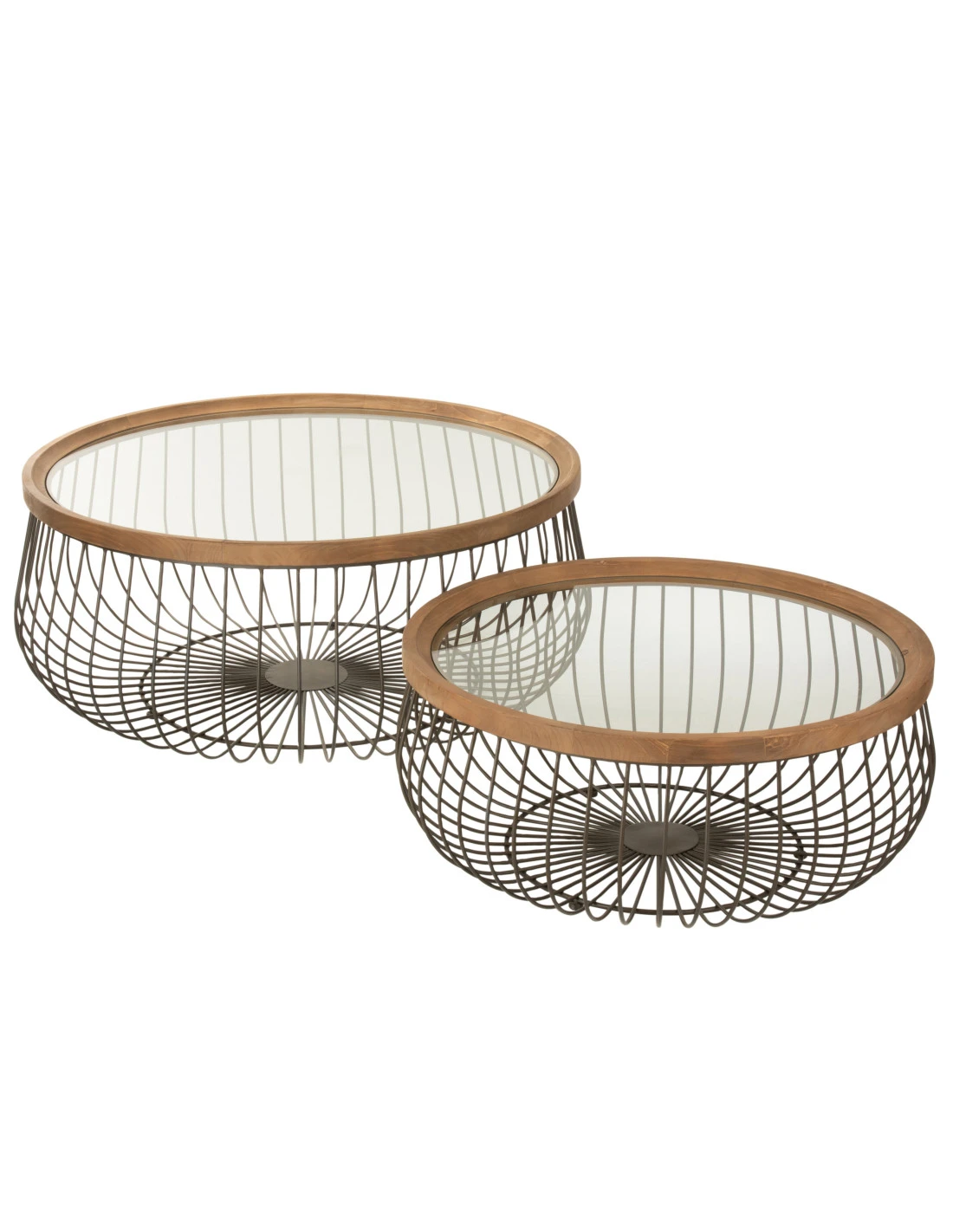 Ensemble de 2 tables basses rondes en métal/verre noir. Larges dimensions de 100x45x100 cm, poids de 30,6 kg. Collection Hiver 2021, couleur noire. Matériaux : verre (40%), bois de sapin (10%), métal (50%). Poids de siège maximal de 50 kg. Montage requis.