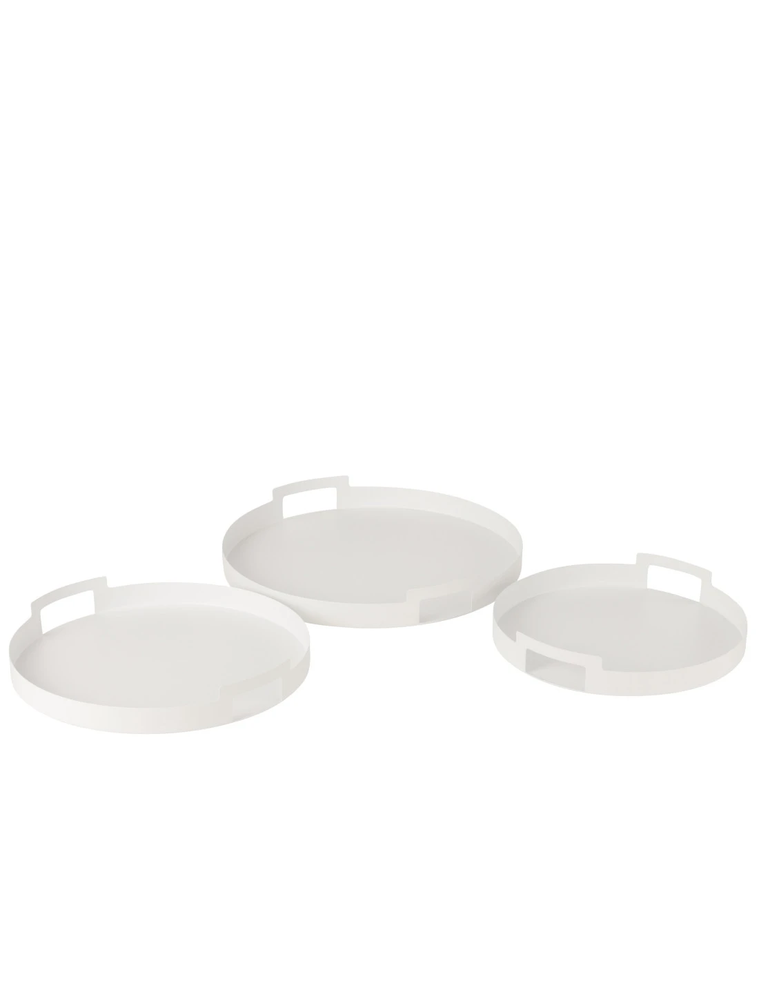 Ensemble de 3 plateaux ronds en métal blanc. Largeur: 45, Hauteur: 6.5, Longueur: 45, Poids: 3.645 kg. Collection: Hiver 2024. Couleur: Blanc. Matériau: Fer (100%).