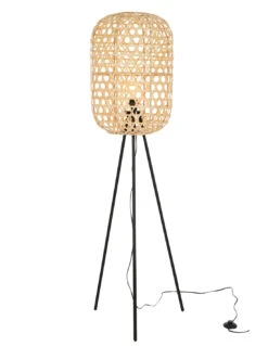 Lampe Sur Pied Trépied En Rotin/métal Marron/noir De Petite Taille