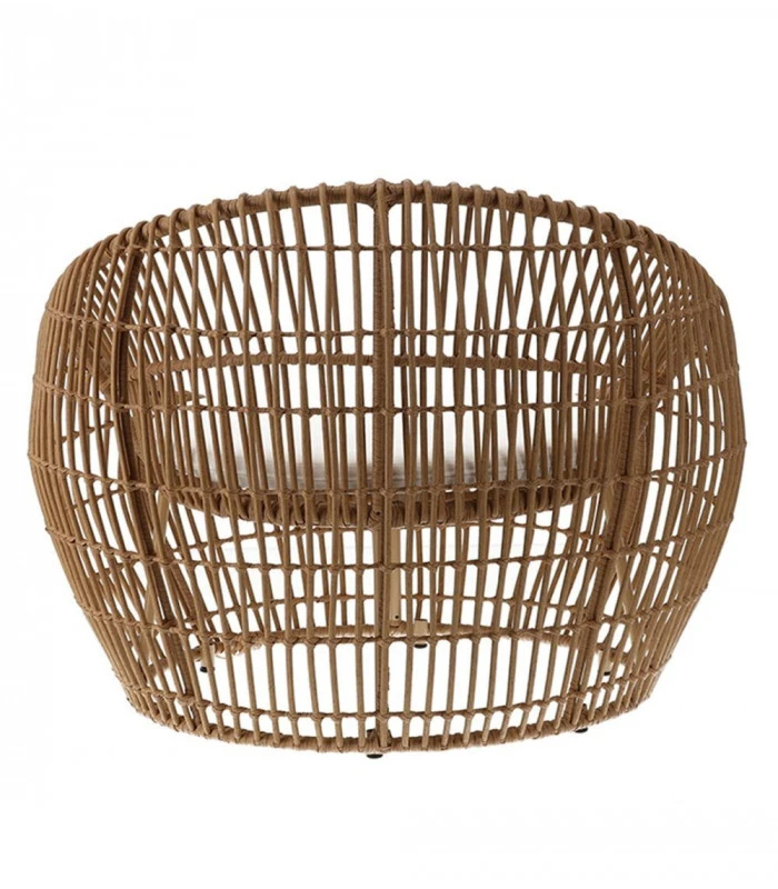 - Matériaux : assise en rotin synthétique, structure en acier, coussin en tissu 100% polyester