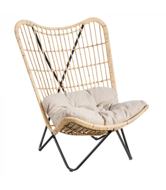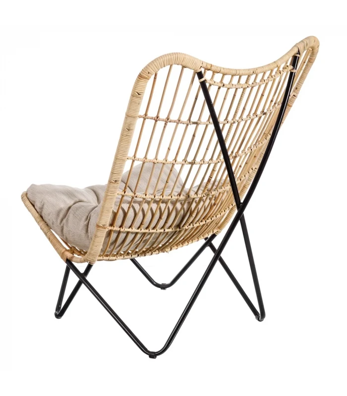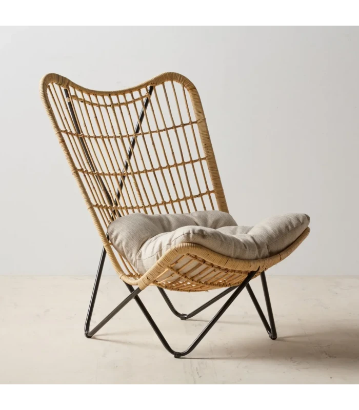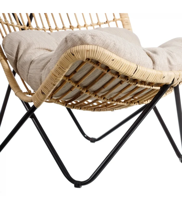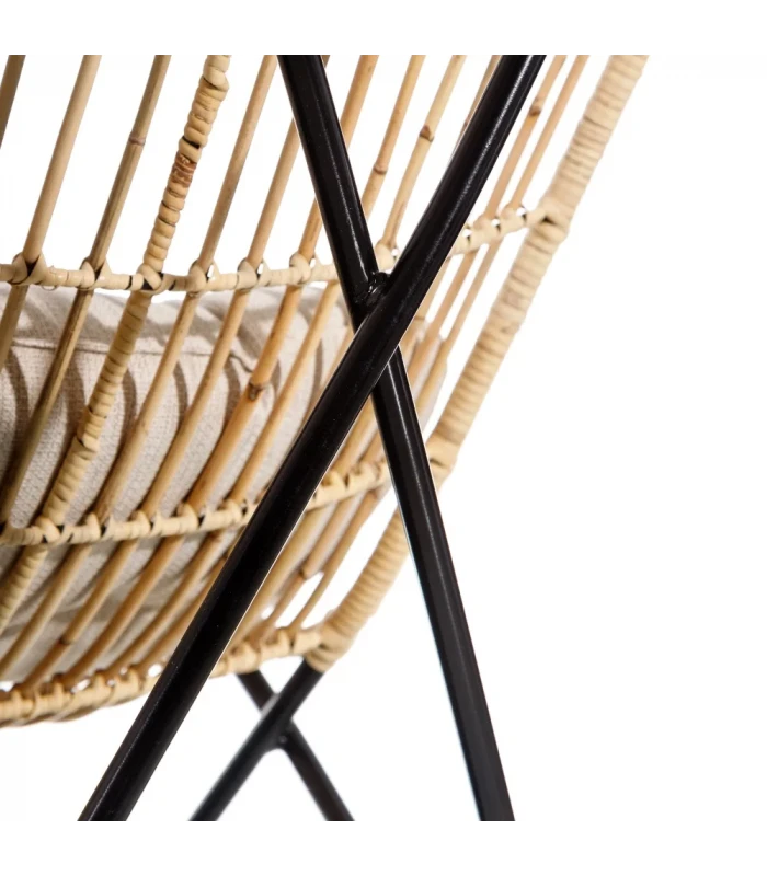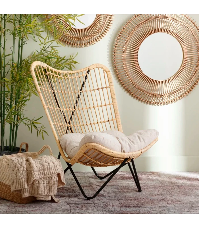 Très original, en rotin naturel et doté d’un élégant coussin.