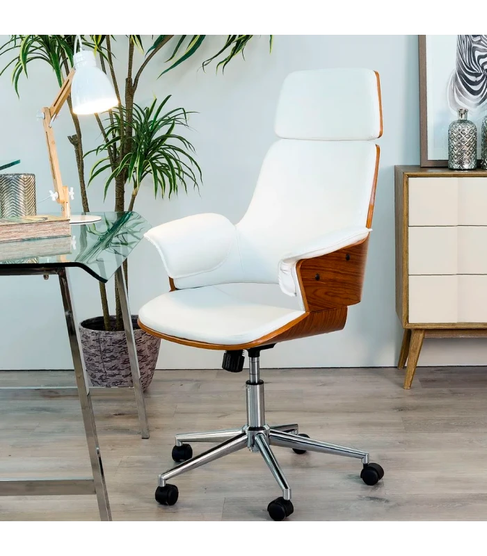 Coque en bois qui souligne le dessin exclusif de ce splendide mobilier de bureau et qui devient un élément de déco à part entière.