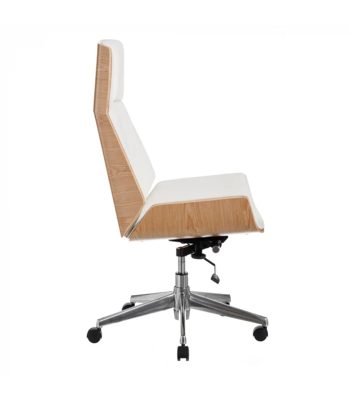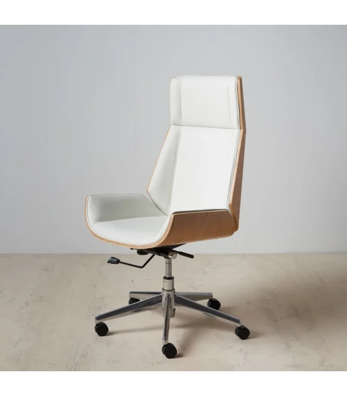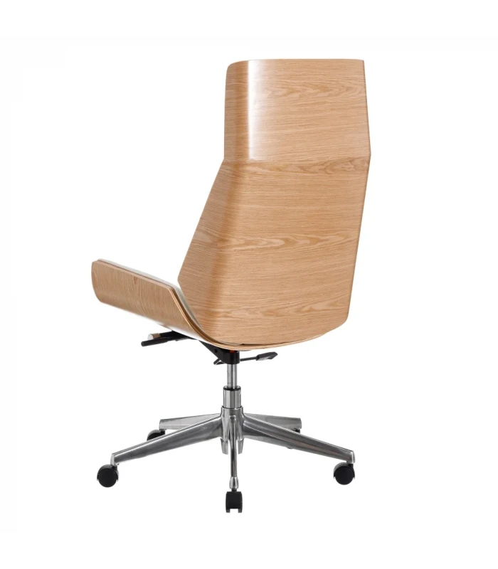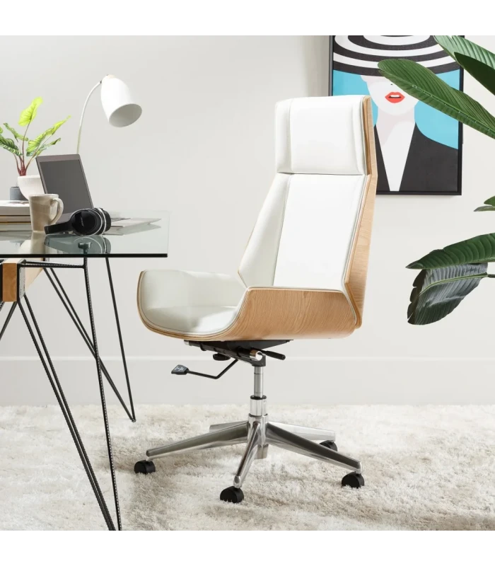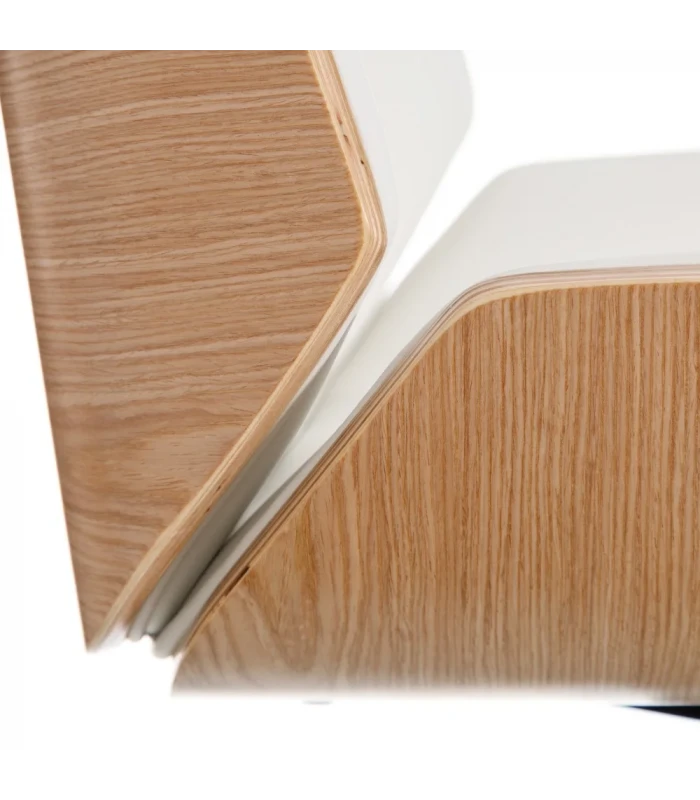 Coque en bois qui souligne le dessin exclusif de ce splendide mobilier de bureau et qui devient un élément de déco à part entière.