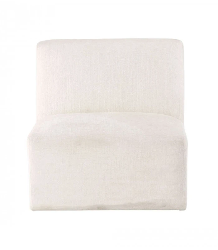 Sa structure en bois est recouverte de mousse, le tout habillé d’un tissu doux effet velours de couleur blanc?