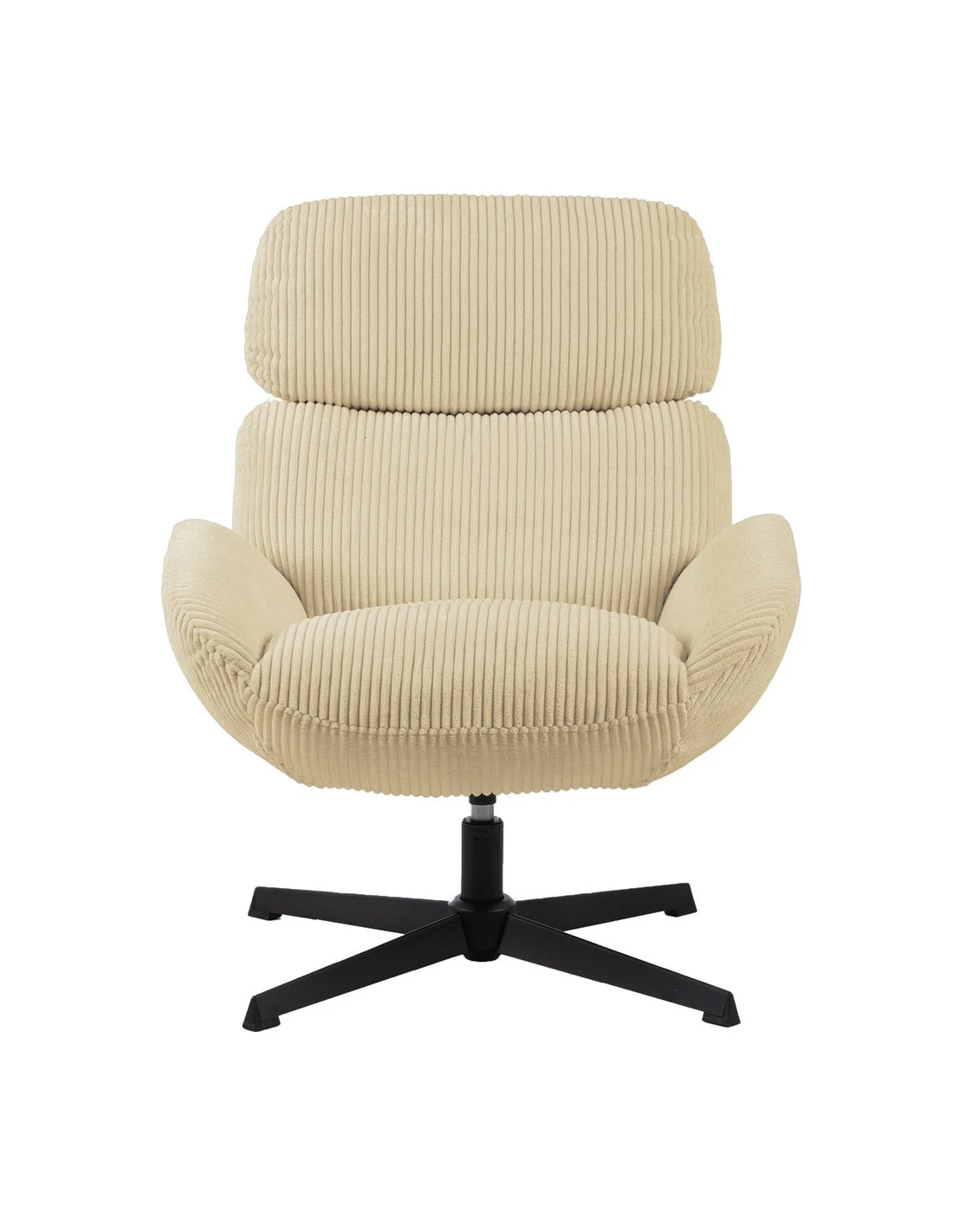 Le fauteuil Nicolas est ultra-confortable. En velours côtelé et pivotant, il vous enveloppe de douceur pour des moments de détente absolue.