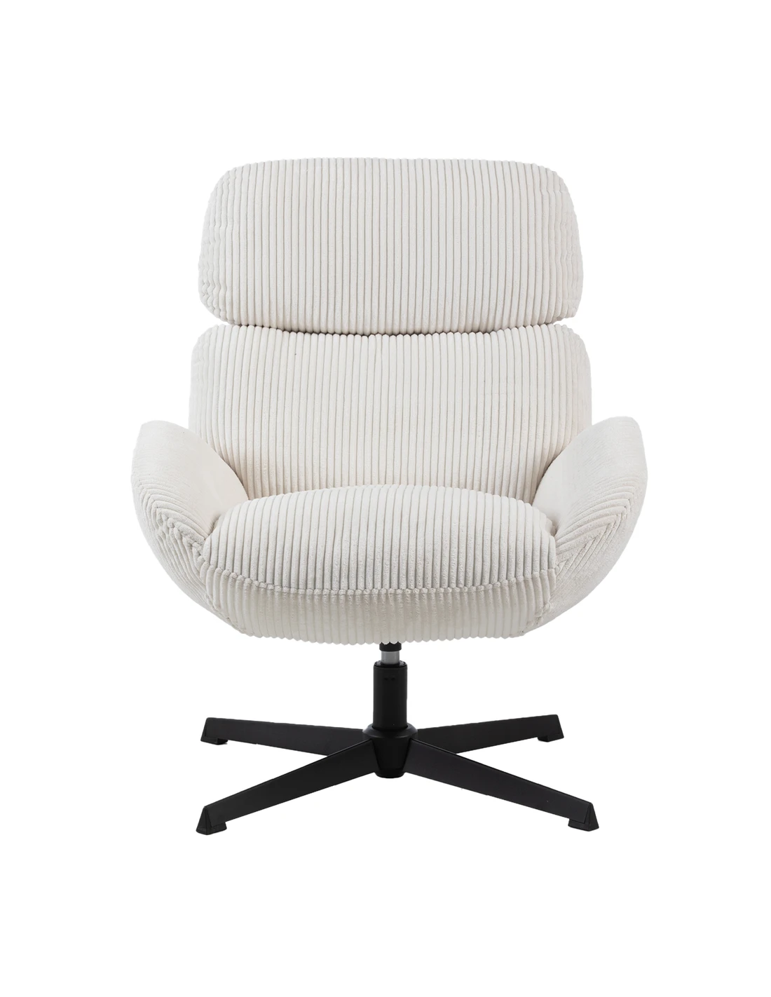 Le fauteuil Nicolas est ultra-confortable. En velours côtelé et pivotant, il vous enveloppe de douceur pour des moments de détente absolue.