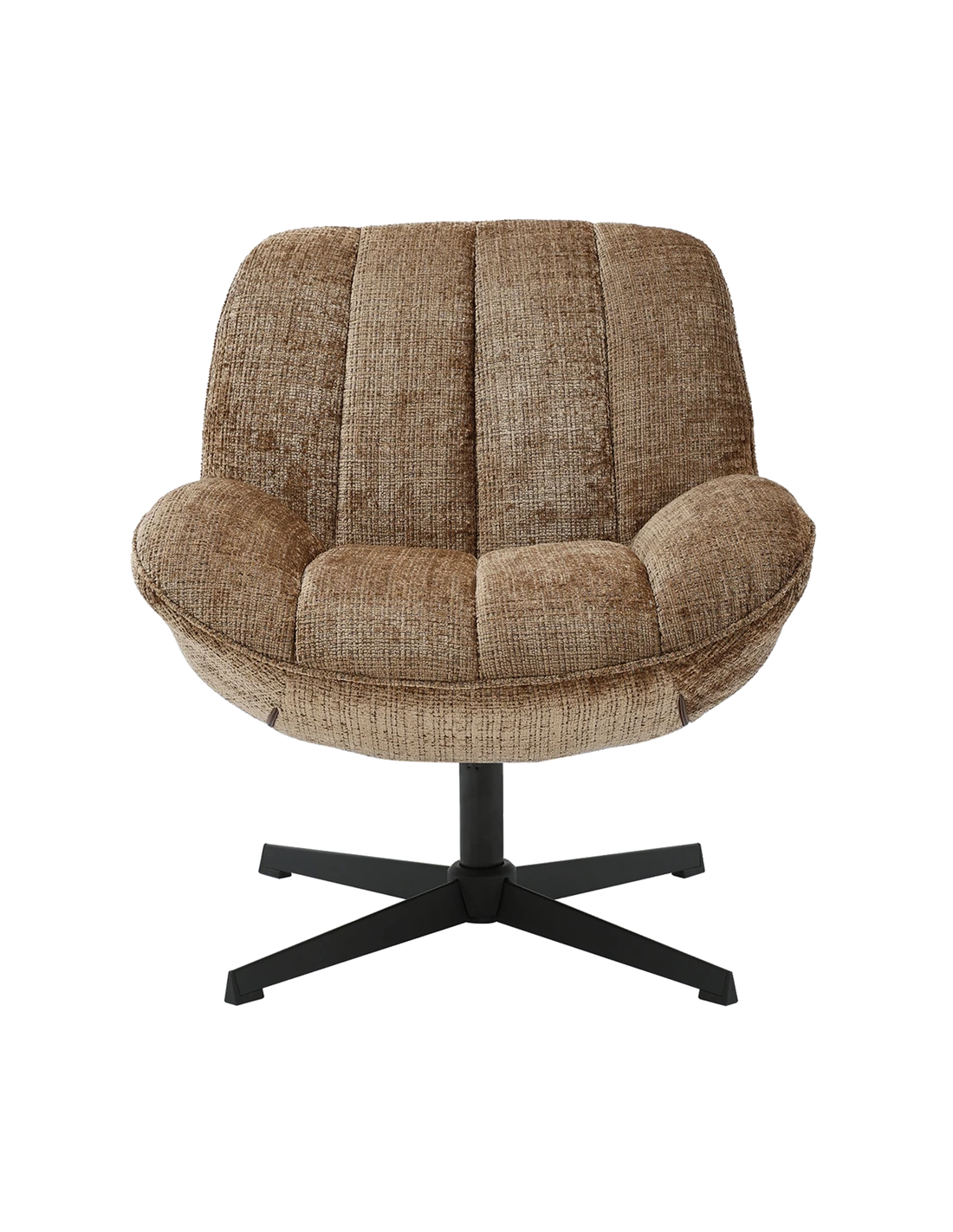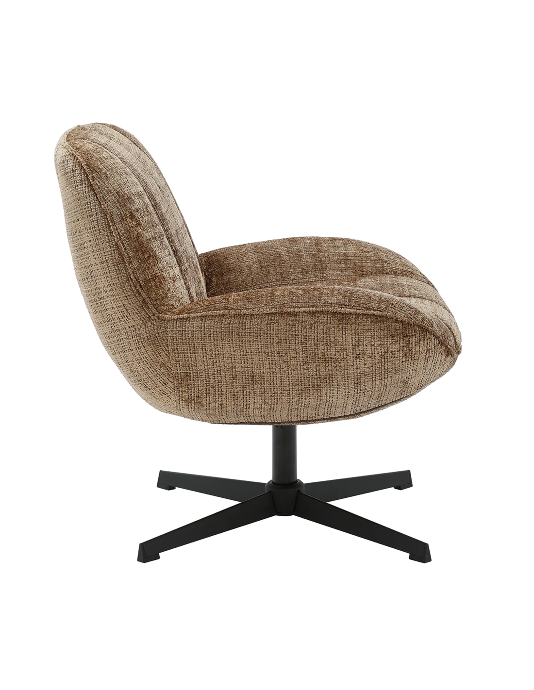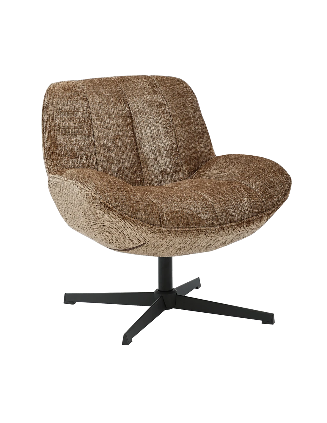 Fauteuil design d’inspiration 70’s moelleux et recouvert de tissu qualitatif. Le fauteuil pivotant (pratique et agréable) Pauline vous accueille tout en douceur pour des moments de détente totale.