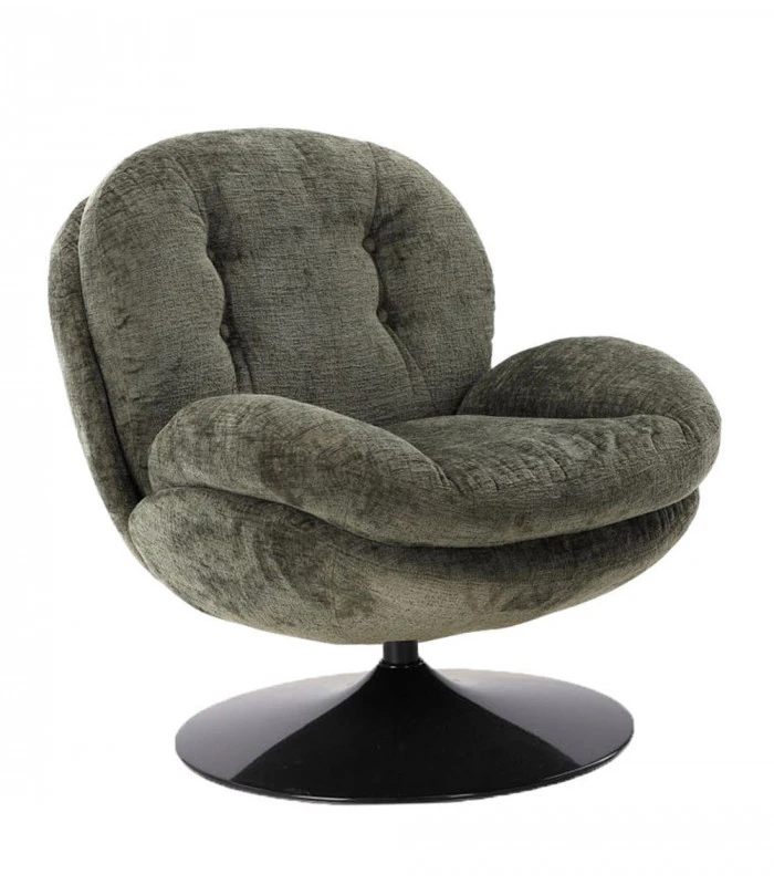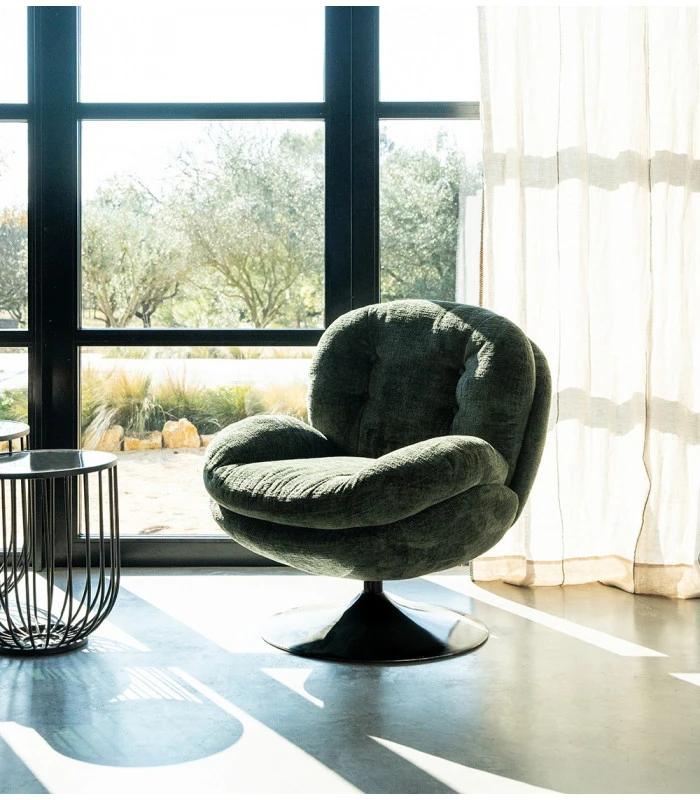 Moelleux à souhait, le fauteuil Memento, ici de couleur Kaki est irrésistible avec son assise pivotante et sa base noire.