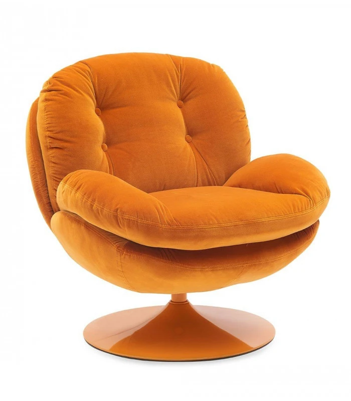 Moelleux à souhait, le fauteuil Memento, ici de couleur orange est irrésistible avec son assise pivotante et sa base orange.