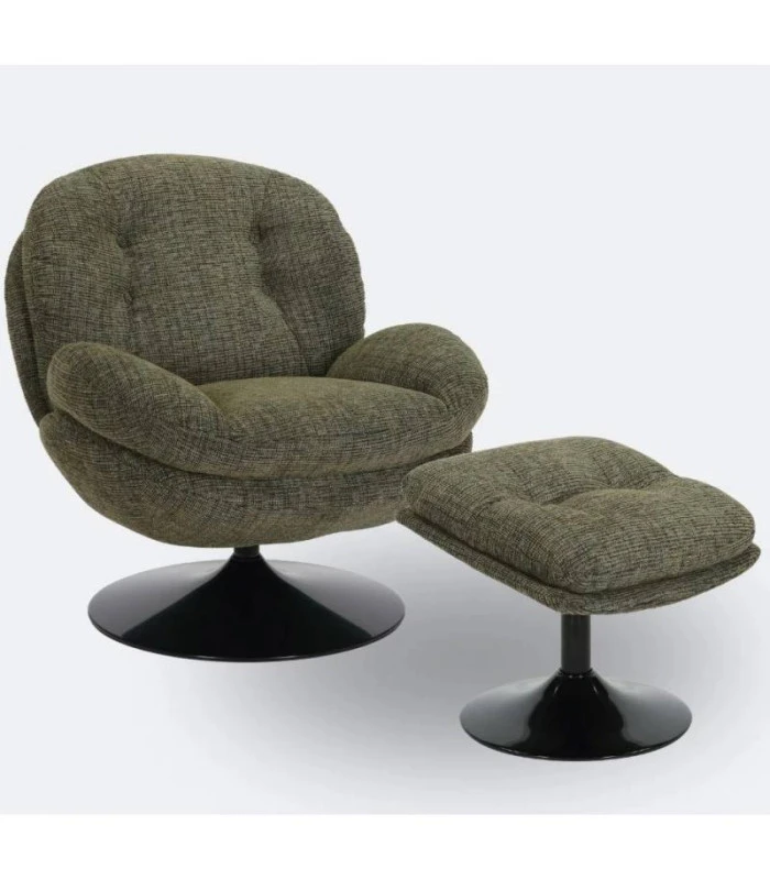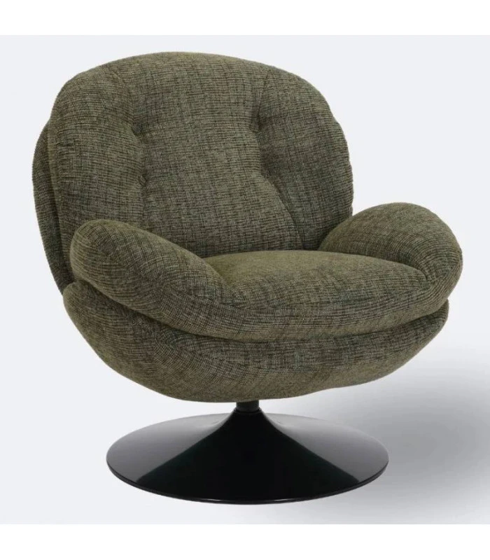 Moelleux à souhait, le fauteuil Memento, ici de couleur Vert Mousse est irrésistible avec son assise pivotante et sa base noire.