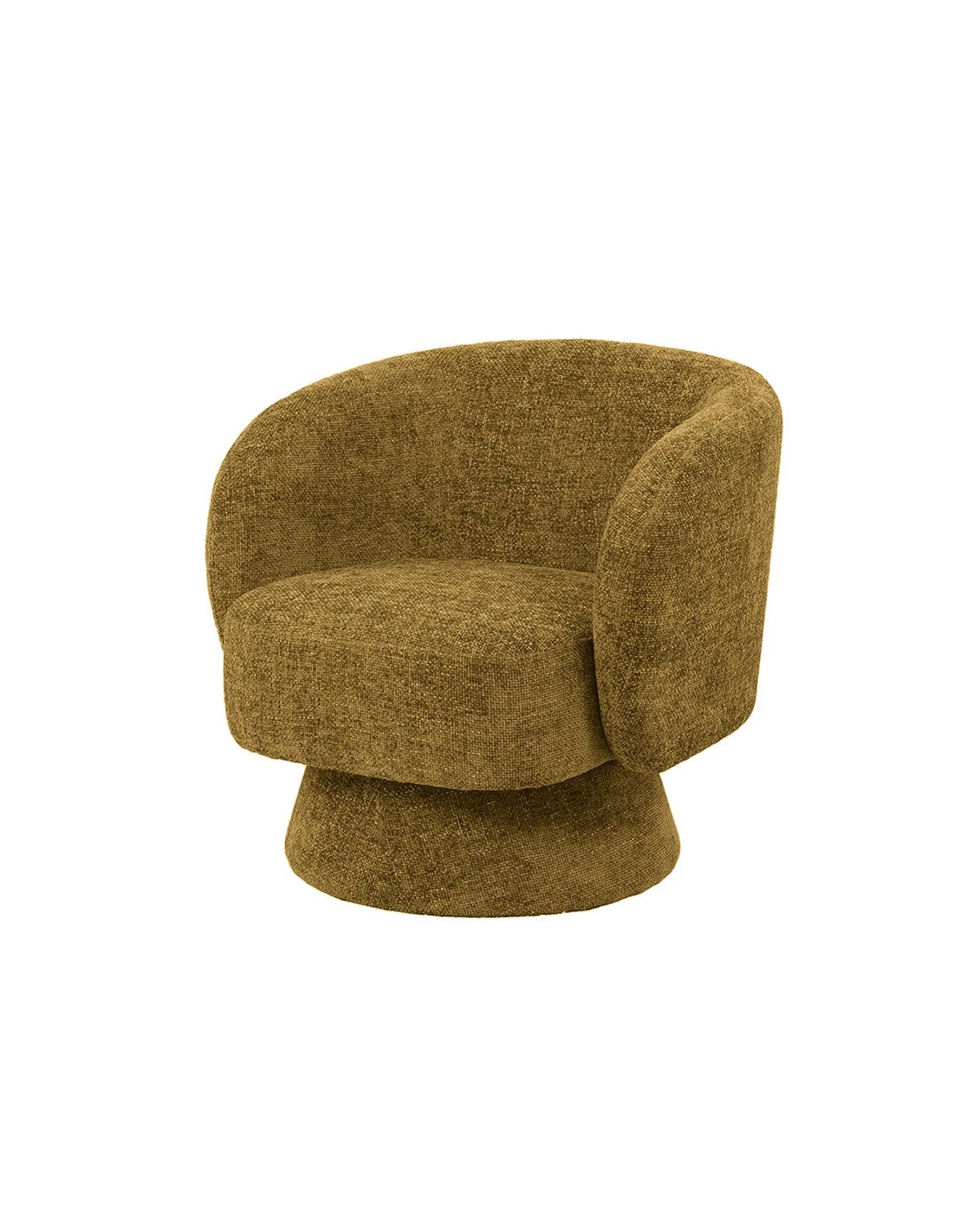 Le Fauteuil Rondeur, un fauteuil pivotant au design raffiné et confortable, parfait pour une expérience de détente pratique et élégante dans votre espace de vie.