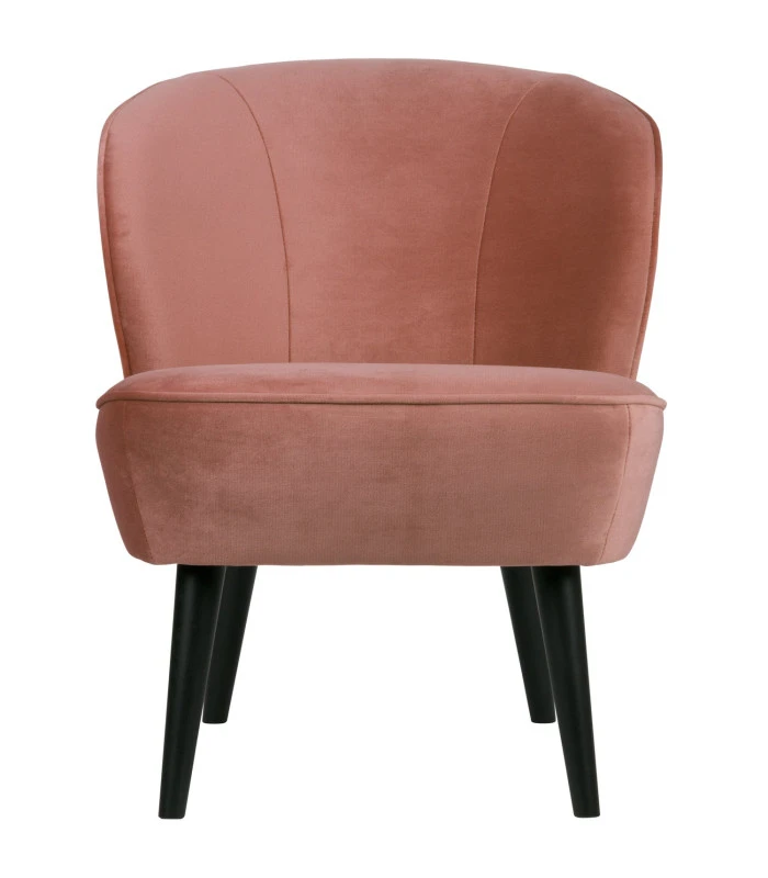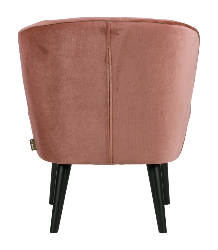 Le fauteuil WOOOD Sara est une beau fauteuil avec des pieds en bouleau laqué noir et une zone d’assise confortable. Le fauteuil est rembourré dans la couleur vieux rose avec un tissu de velours 100% polyester.