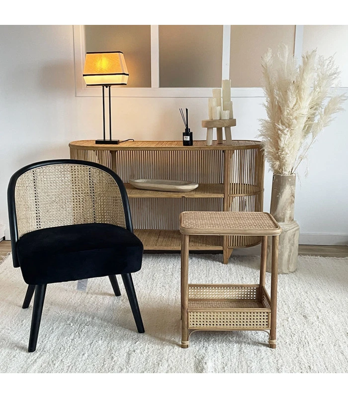 Le fauteuil sharing se caractérise par son design simple et l’utilisation de matériaux naturels bois et cannage. L’ergonomie de son dossier donne un maximum de confort et sa taille a été étudiée pour les petits espaces.
