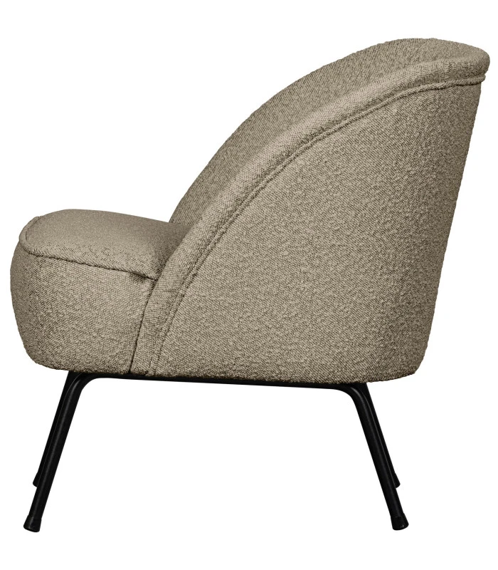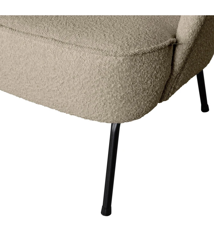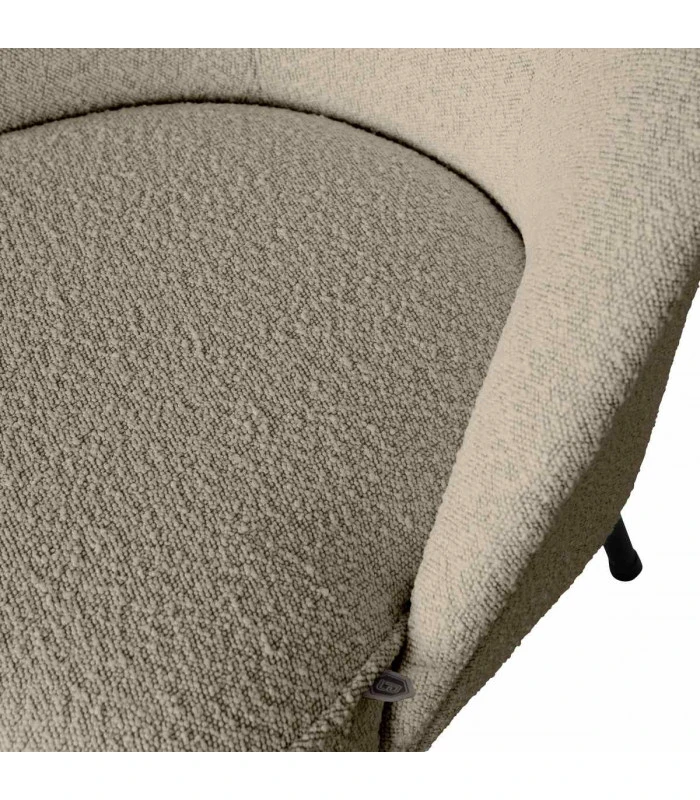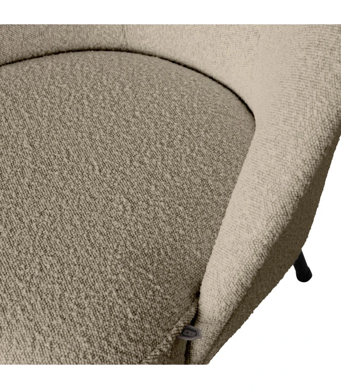 La matière du tissu bouclé Colmar répond à la dernière tendance : les matières souples. Le tissu est confortable et présente une texture élégante. Notre bouclé Colmar a un indice Martindale de 100 000, ce qui signifie que le tissu est adapté à un usage intensif. Le tissage dense assure la solidité du tissu, ce qui signifie que le bouclé ne s’usera pas et ne se déchirera pas facilement. En outre, chaque couleur a une grande solidité, mais il est recommandé d’éviter la lumière directe du soleil pour éviter les nuances de couleur. La structure du fauteuil Vogue est en métal avec un revêtement en poudre noir mat. Le cadre du siège est constitué d’une combinaison de panneaux de particules et de contreplaqué. Le siège contient des sangles élastiques et une mousse T3542 qui offre une position assise légèrement ferme et confortable pendant des heures. Le dossier est rempli de mousse T2120.