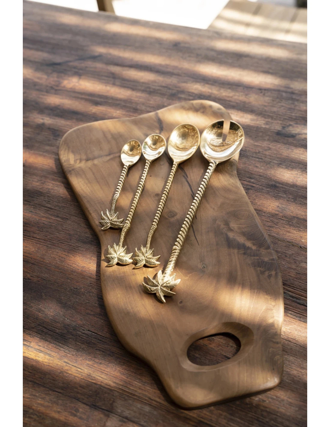 Notre première collection de couverts est belle et brillante! Ces fourchettes et cuillères en laiton massif sont un luxe pur avec des détails exceptionnels, vos invités seront impressionnés par leur poids et leur qualité. Décorés d’un ananas ou d’un palmier pour une touche tropicale. Disponible en différentes tailles et designs.