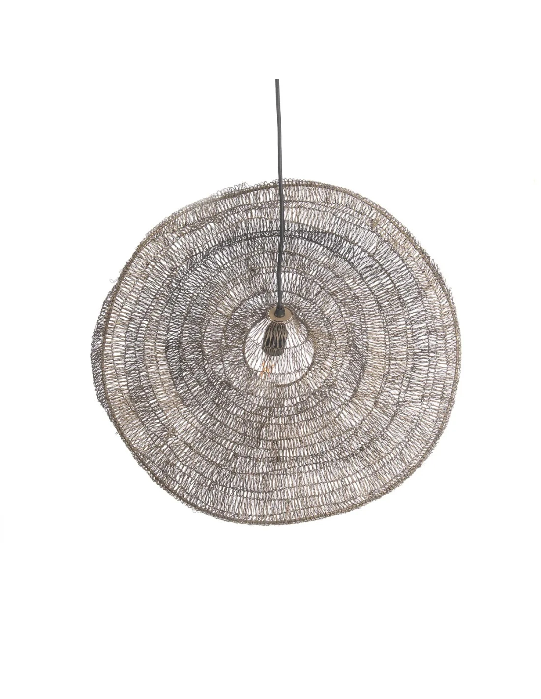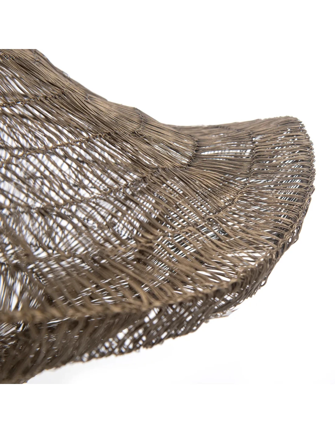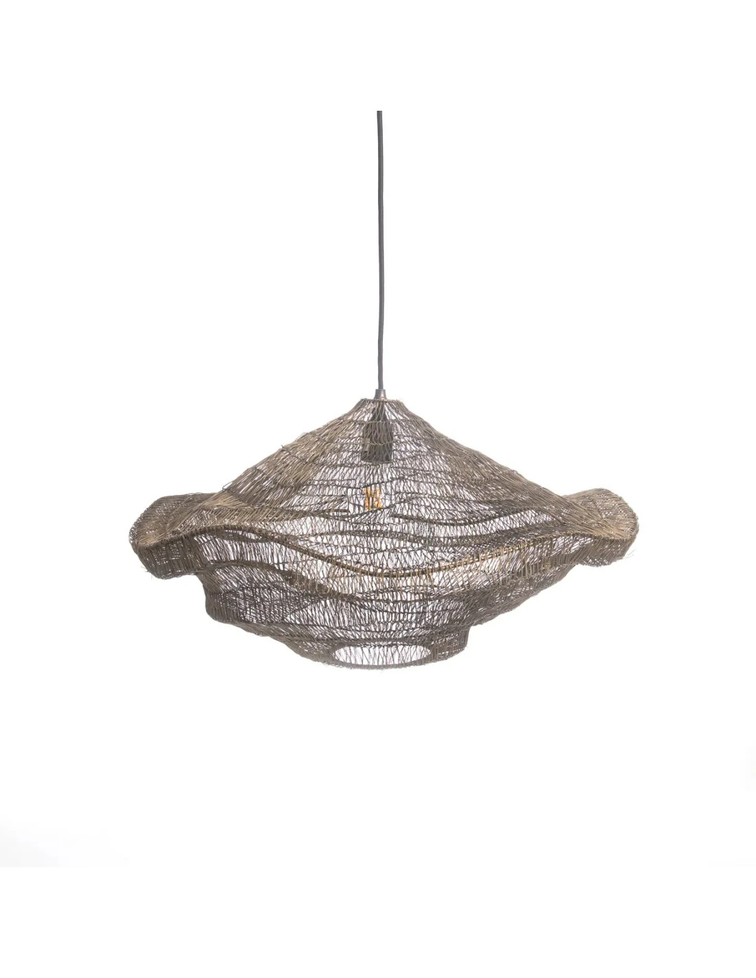 Cette magnifique lampe suspendue en fer au fini laiton profond est une véritable œuvre d’art. Entièrement fabriquée à la main avec de magnifiques détails qui ne cessent d’étonner. Cette lampe suspendue s’intégrera parfaitement au-dessus de votre table à manger, dans votre salon, votre chambre ou même dans votre espace extérieur couvert. Disponible en tailles M et L.