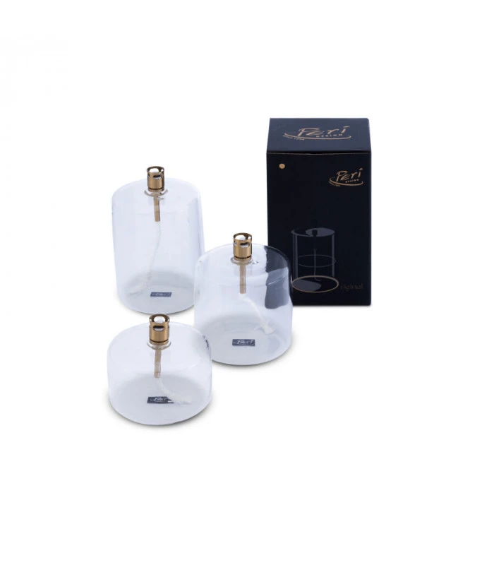 - Matières : Verre soufflé, Acier Laitonné, Mèche en Fibre De Verre (inusable).