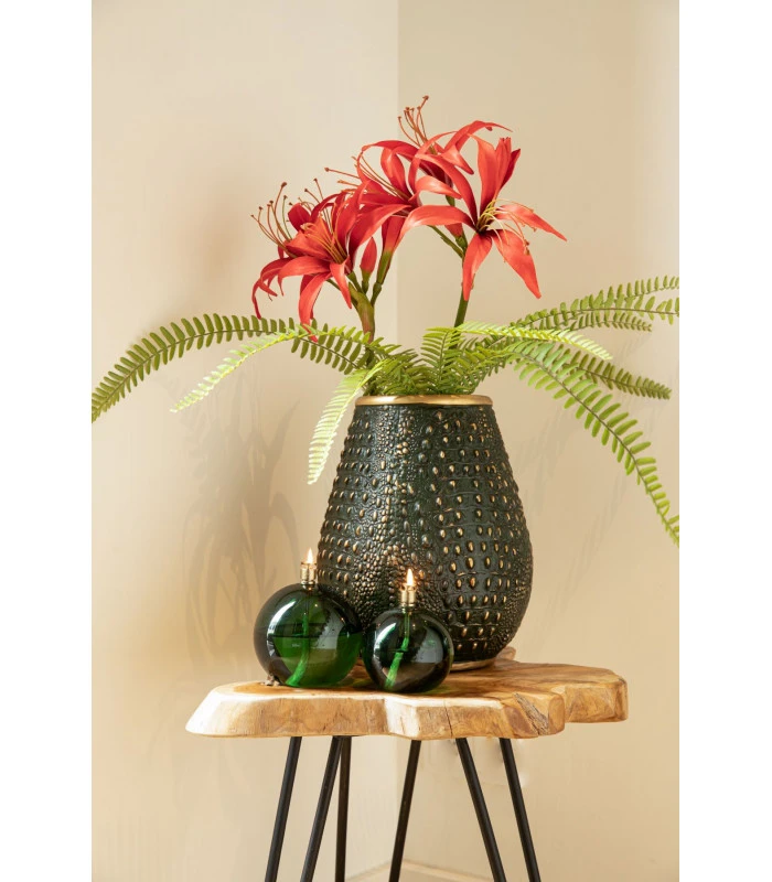 - Matières : Verre soufflé, Acier Chromé, Mèche en Fibre De Verre (inusable).